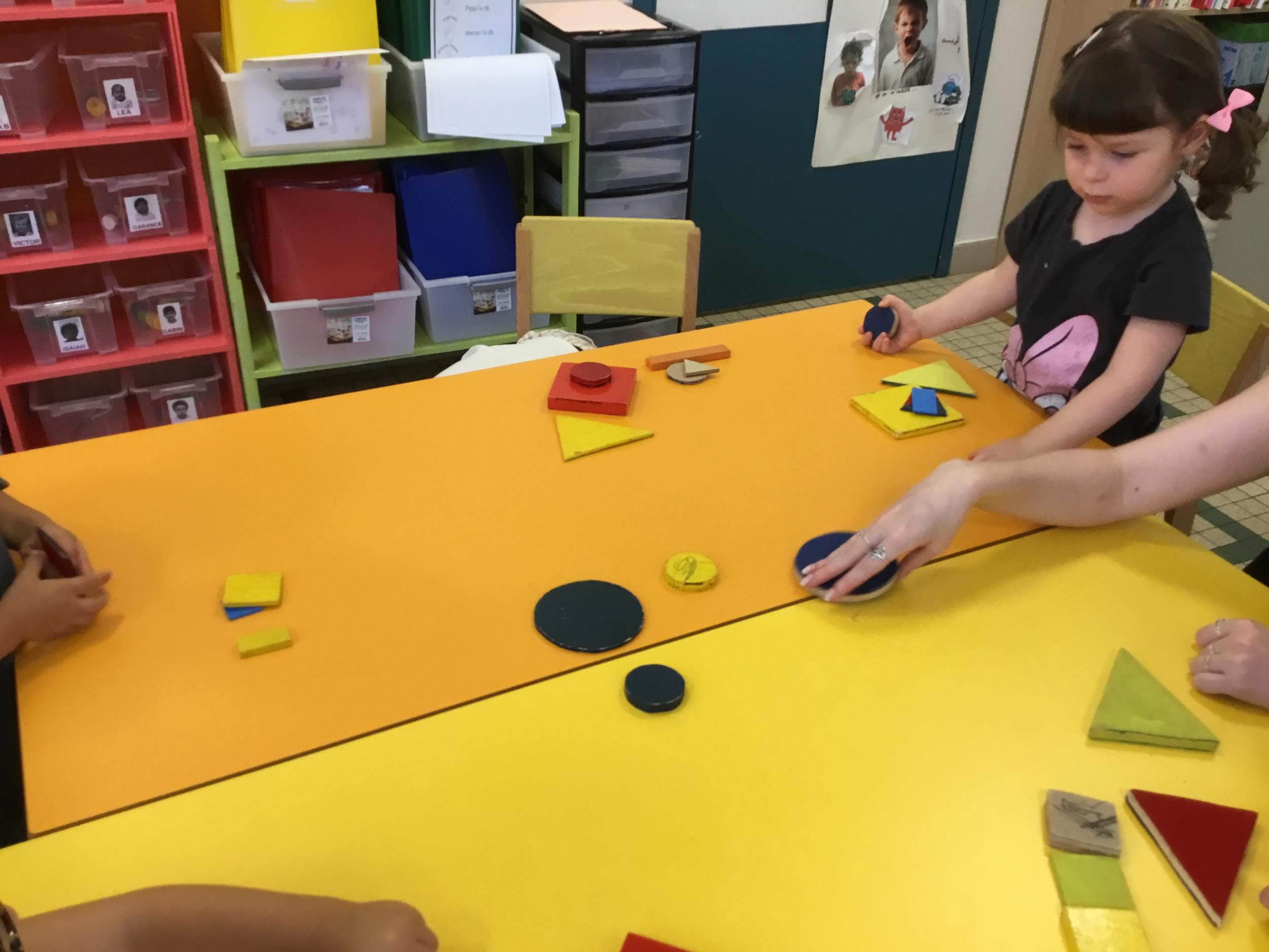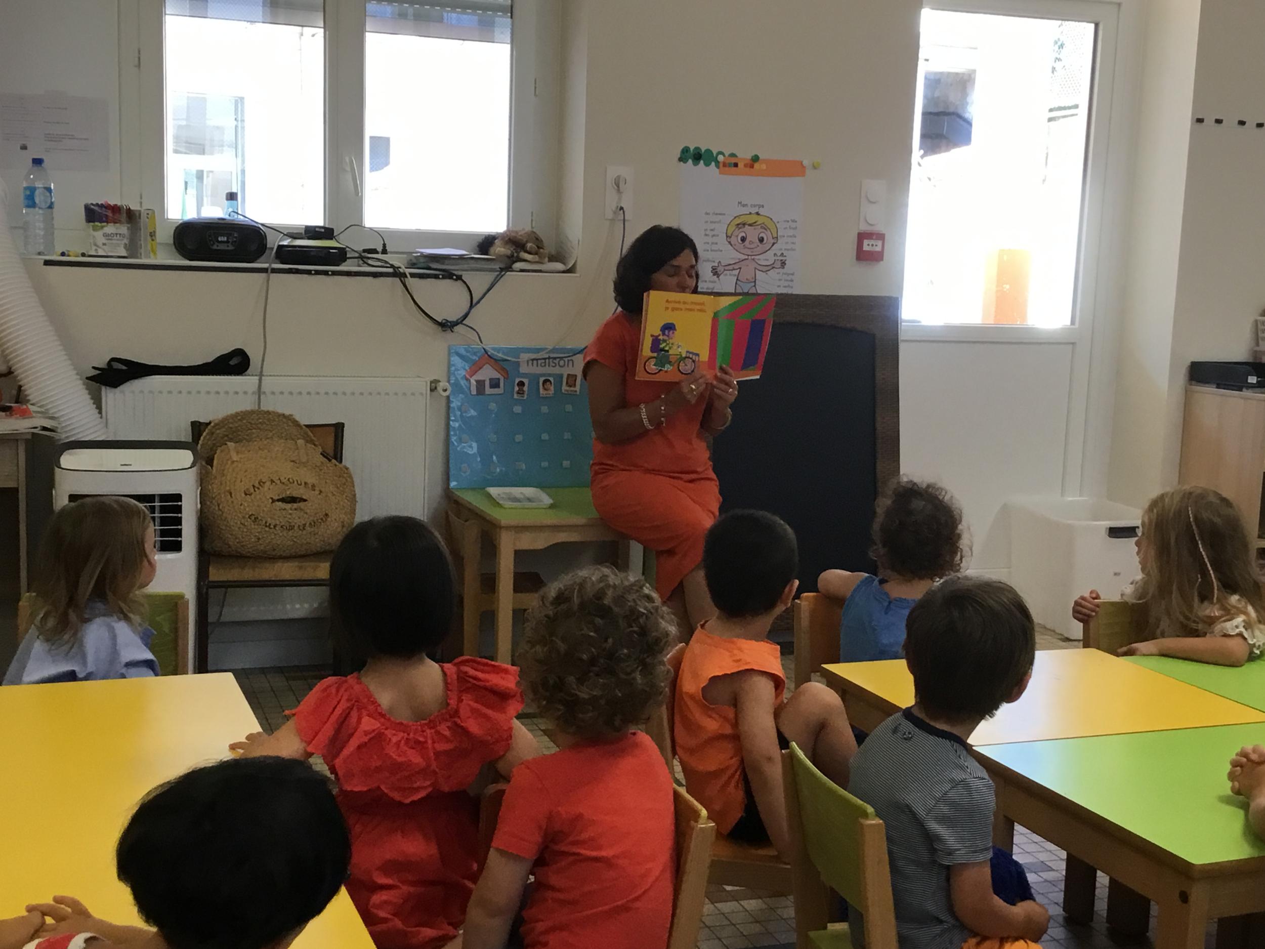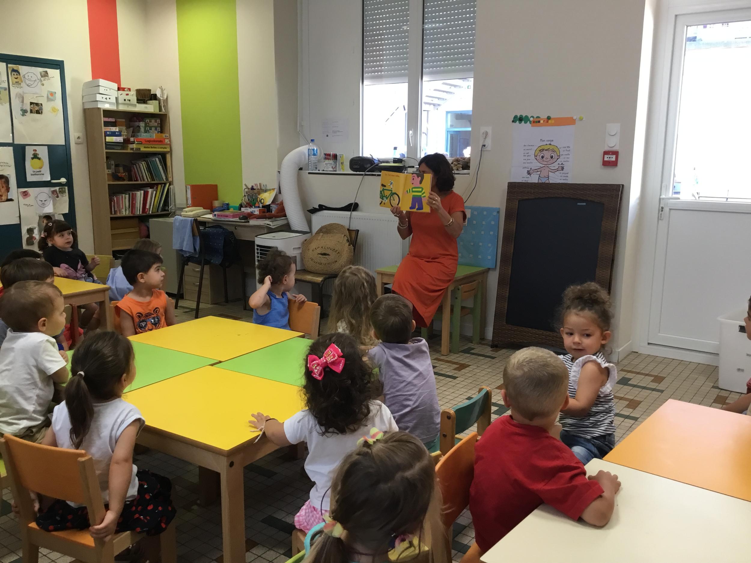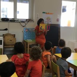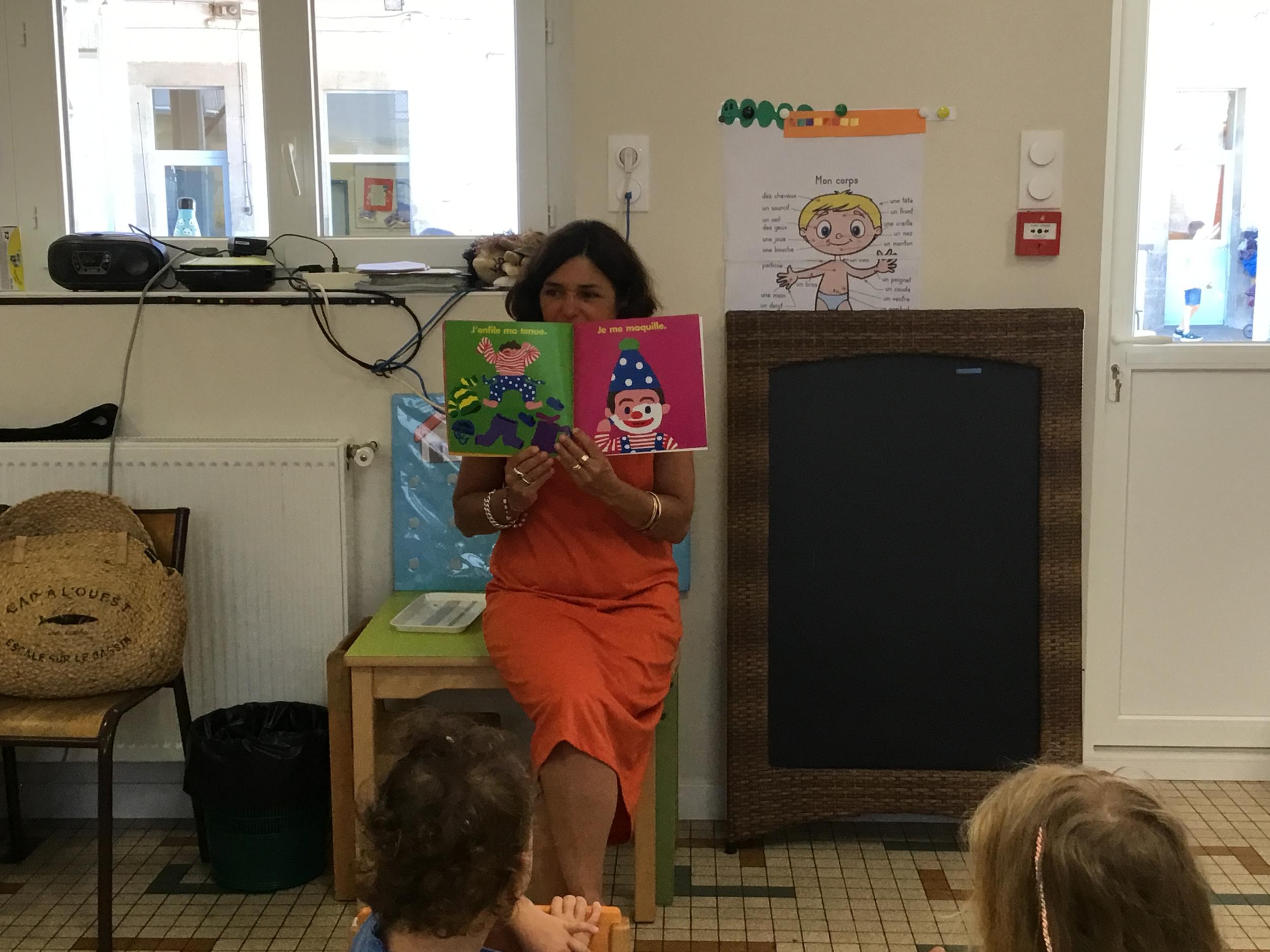 Les enfants ont écouté l’histoire de Tom … Ils ont tous été très attentifs. Les illustrations de l’album nous ont permis de repérer certaines formes mais surtout de faire des hypothèses… car Tom va travailler en vélo dans un lieu où il y a des singes, des acrobates, des éléphants….
