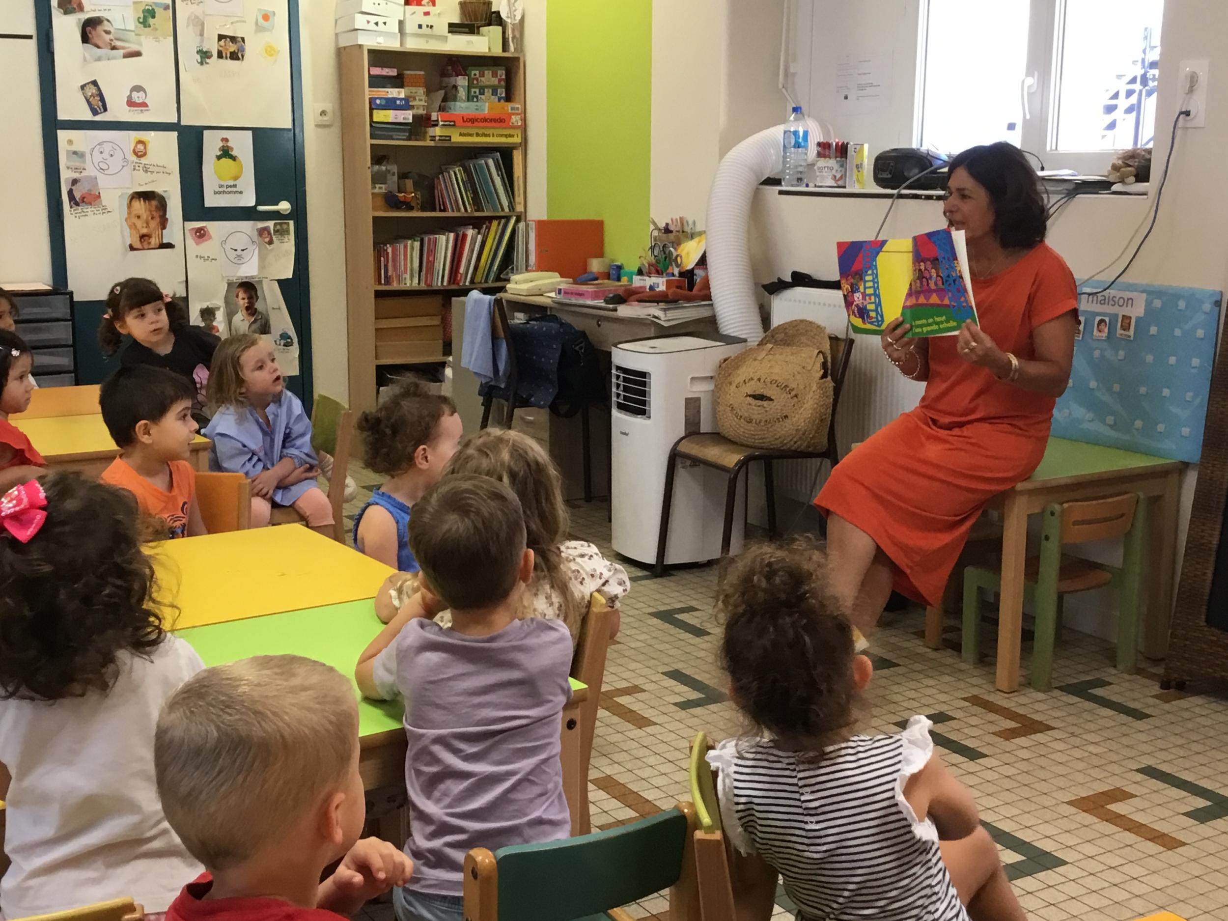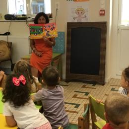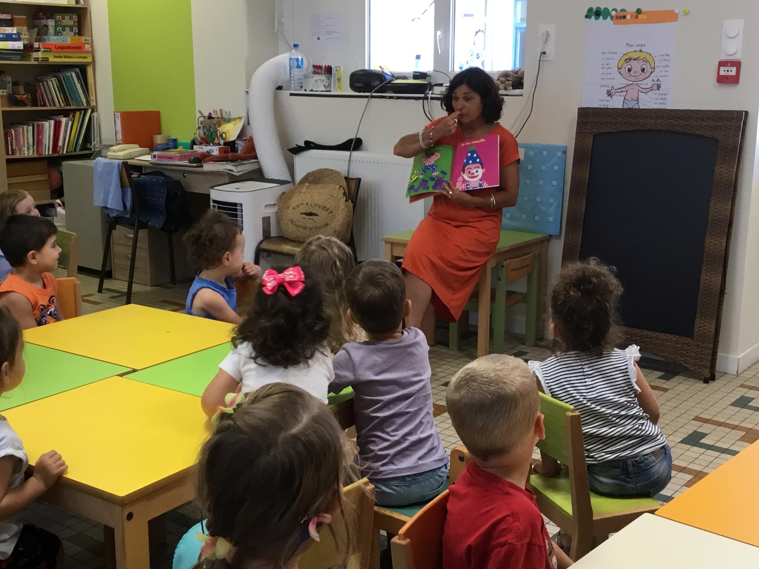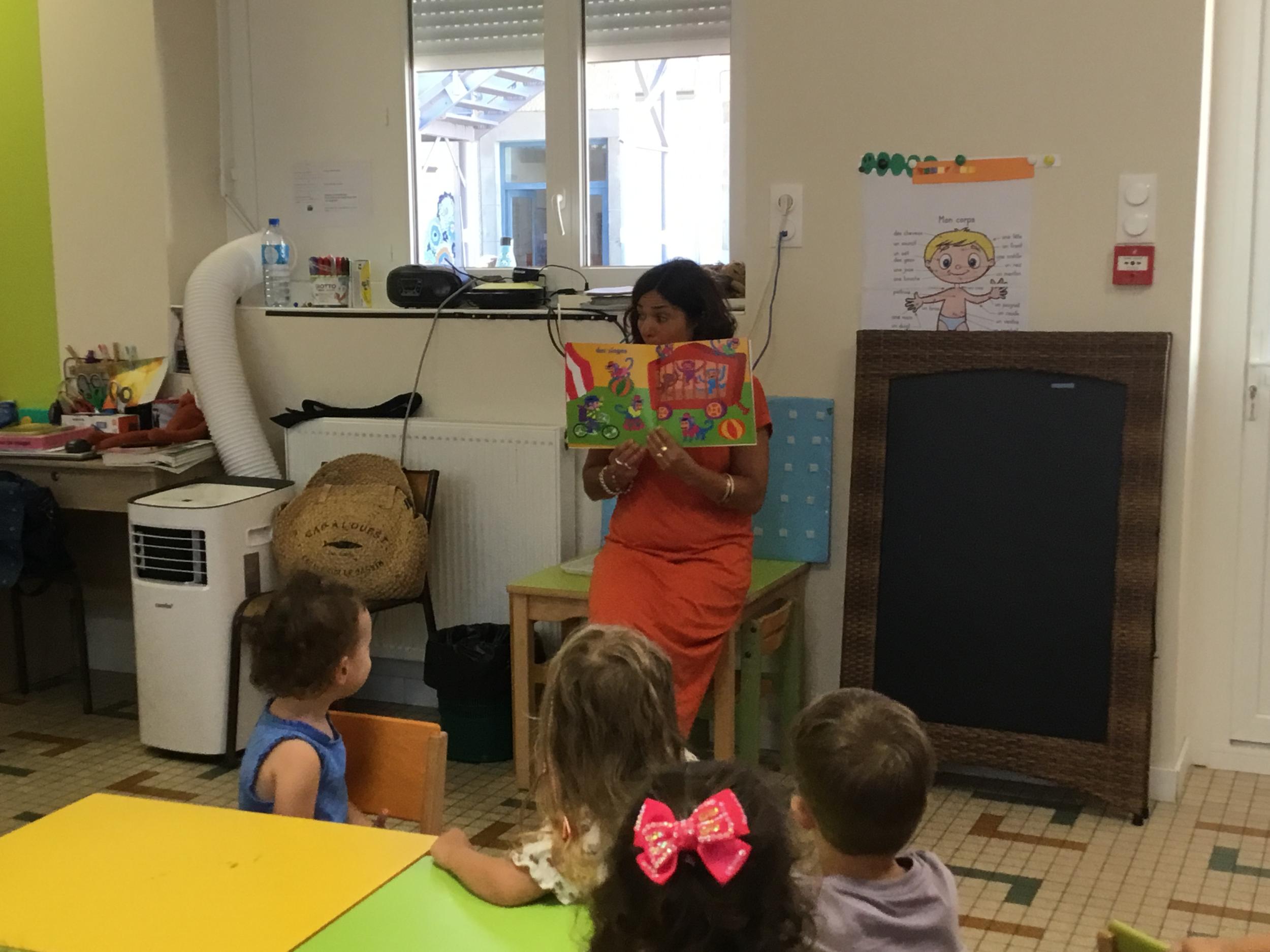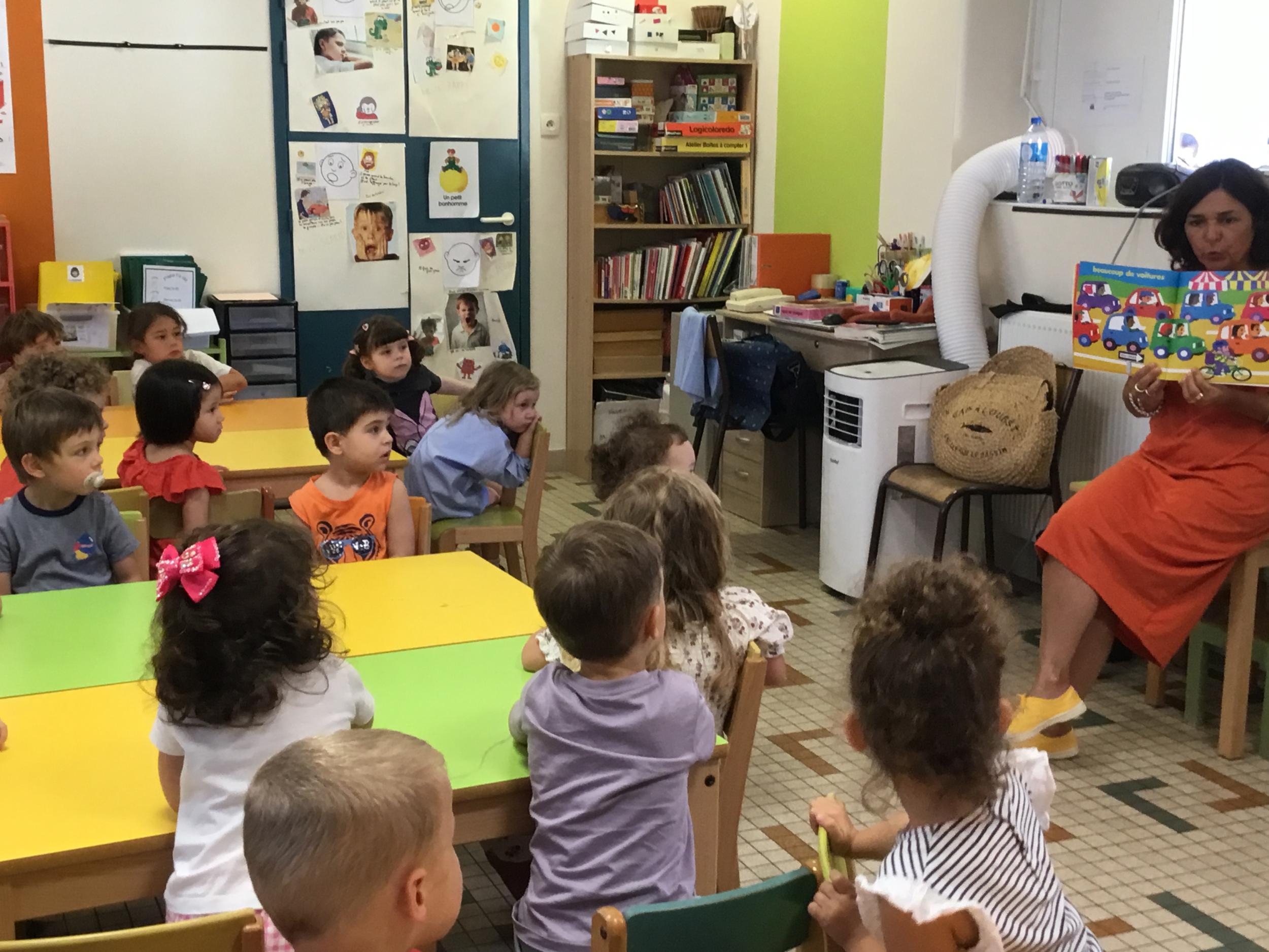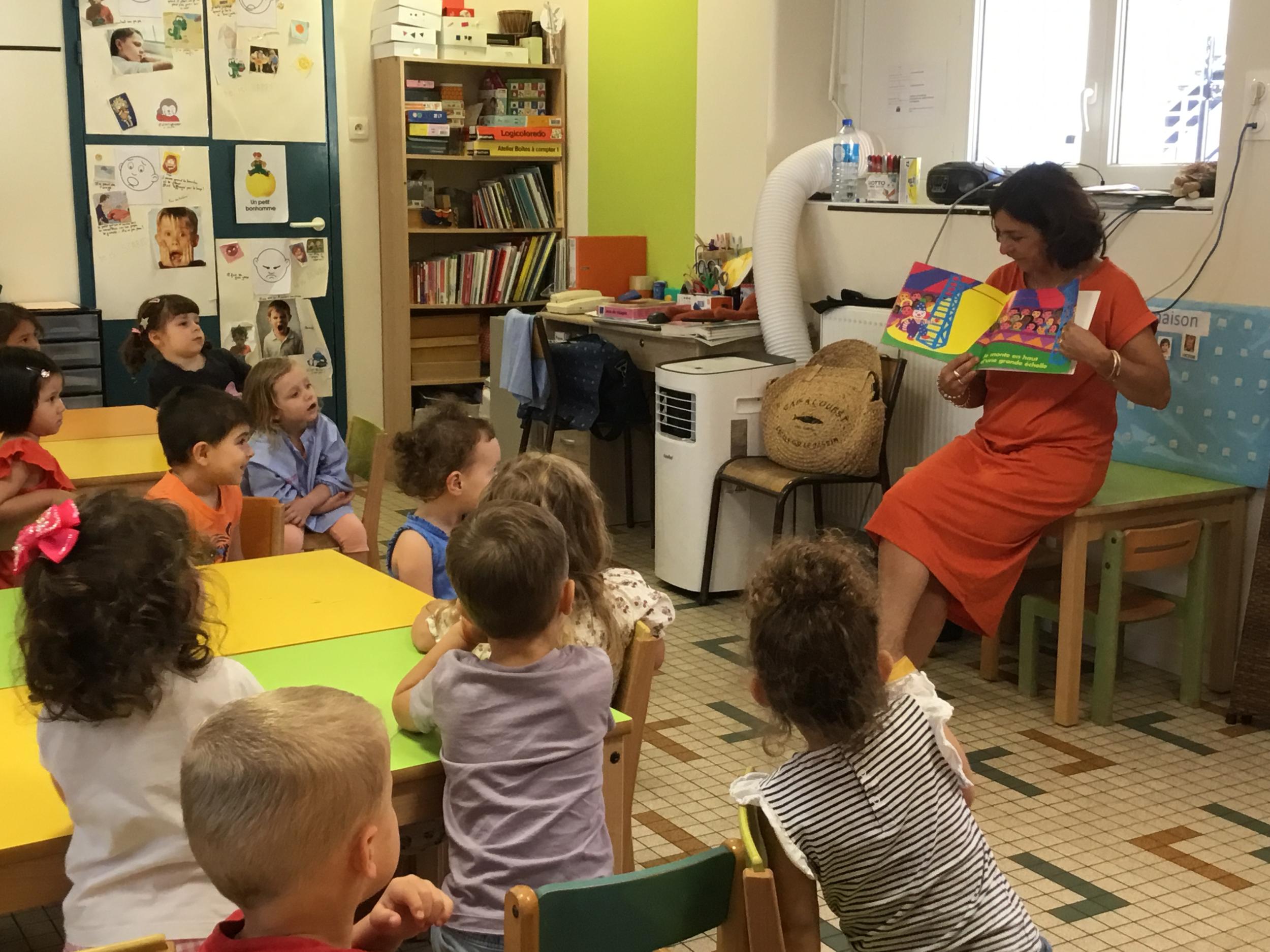 Les enfants ont écouté l’histoire de Tom … Ils ont tous été très attentifs. Les illustrations de l’album nous ont permis de repérer certaines formes mais surtout de faire des hypothèses… car Tom va travailler en vélo dans un lieu où il y a des singes, des acrobates, des éléphants….