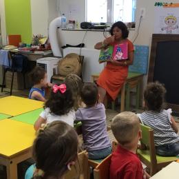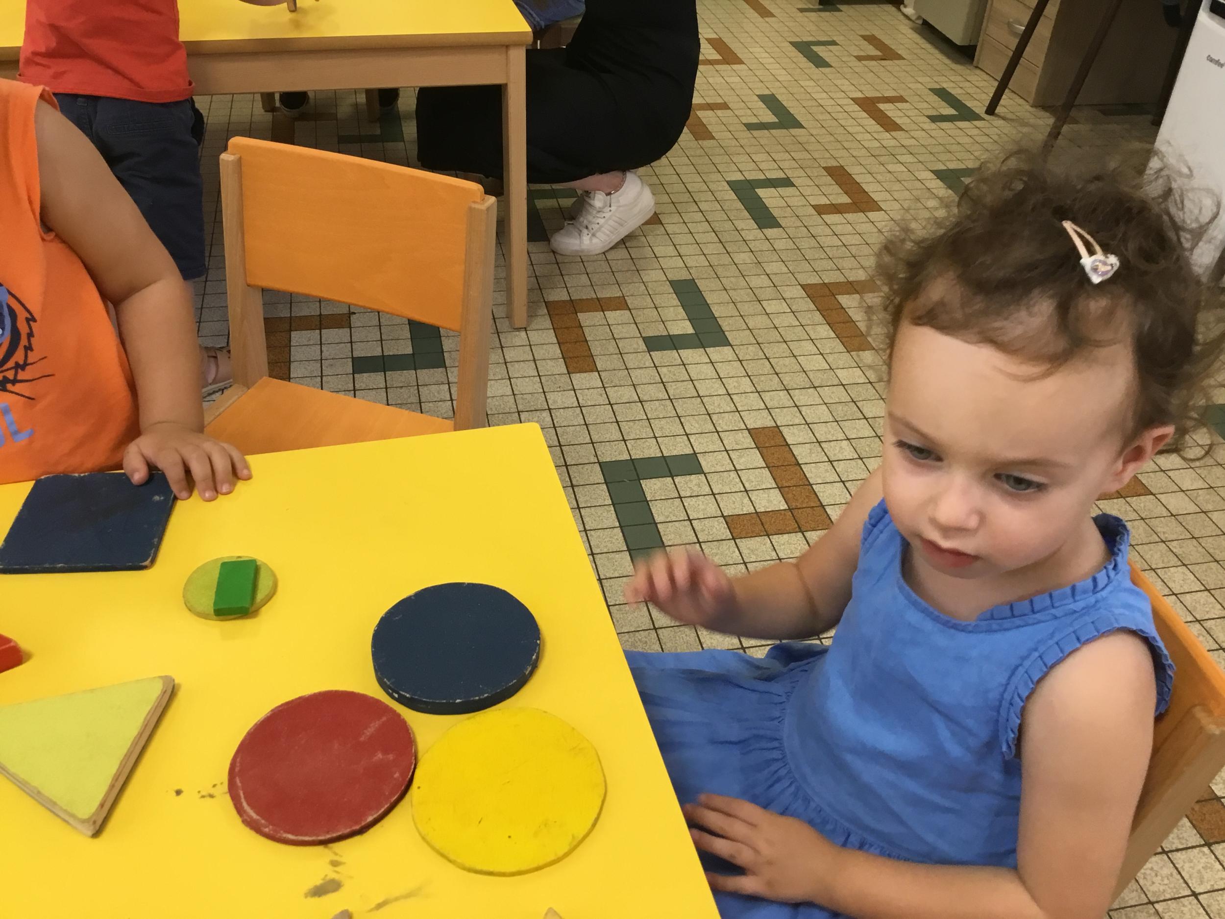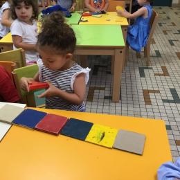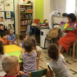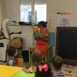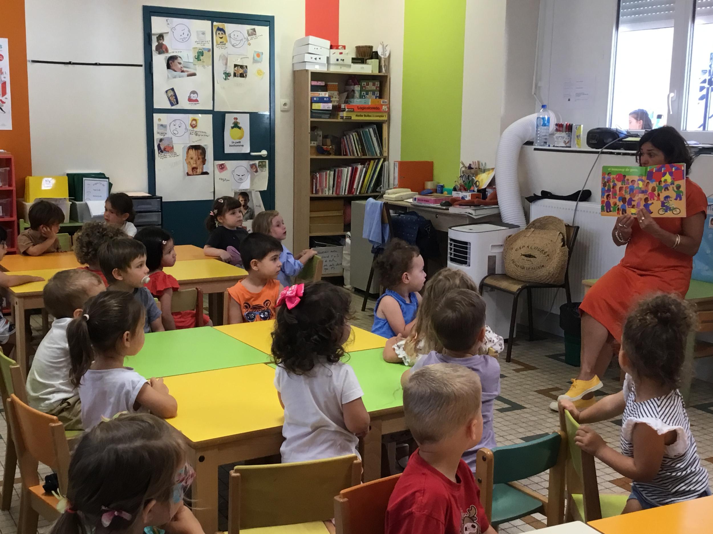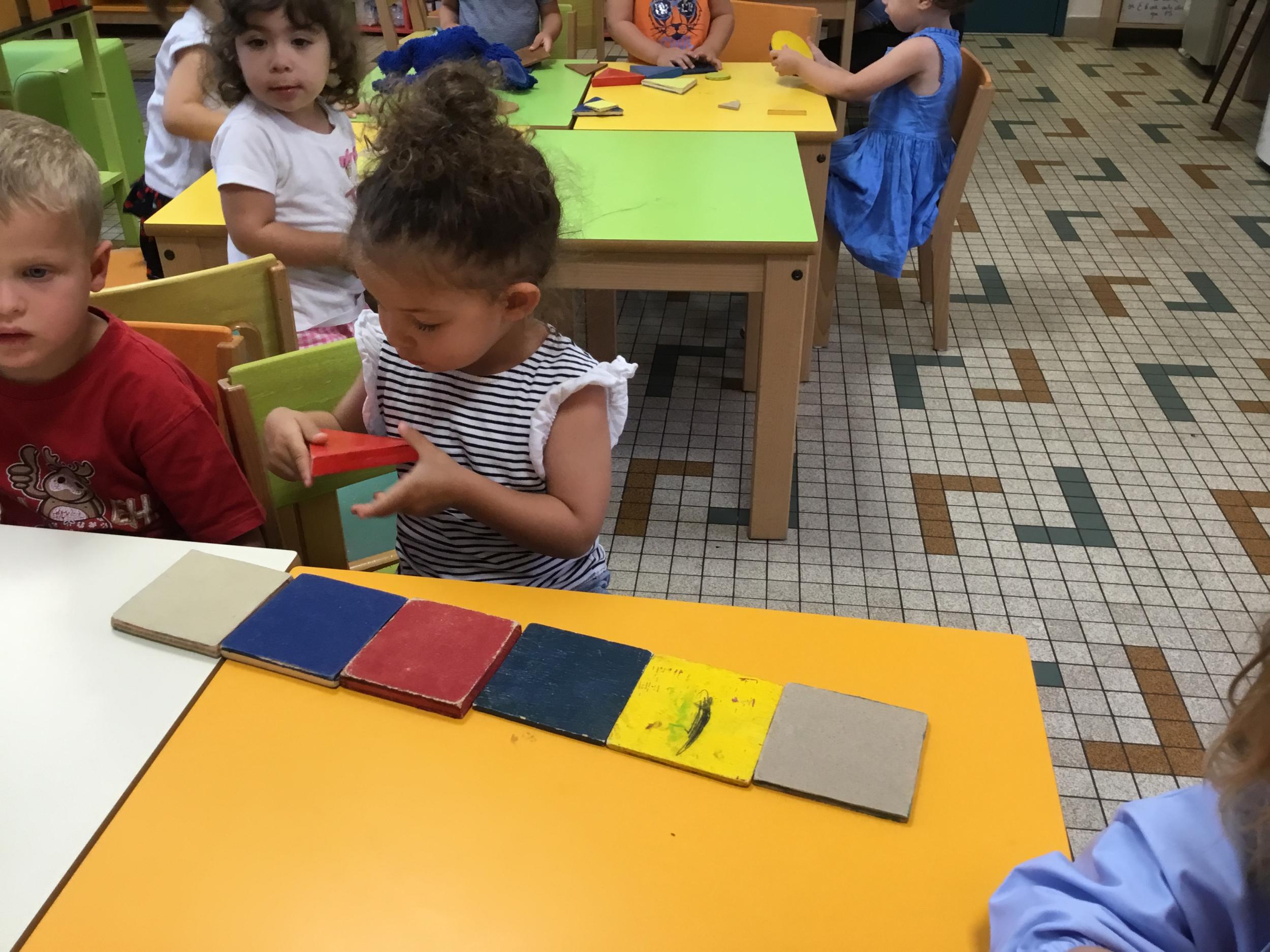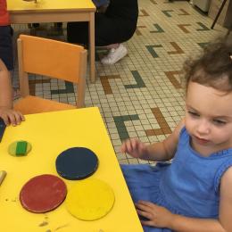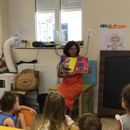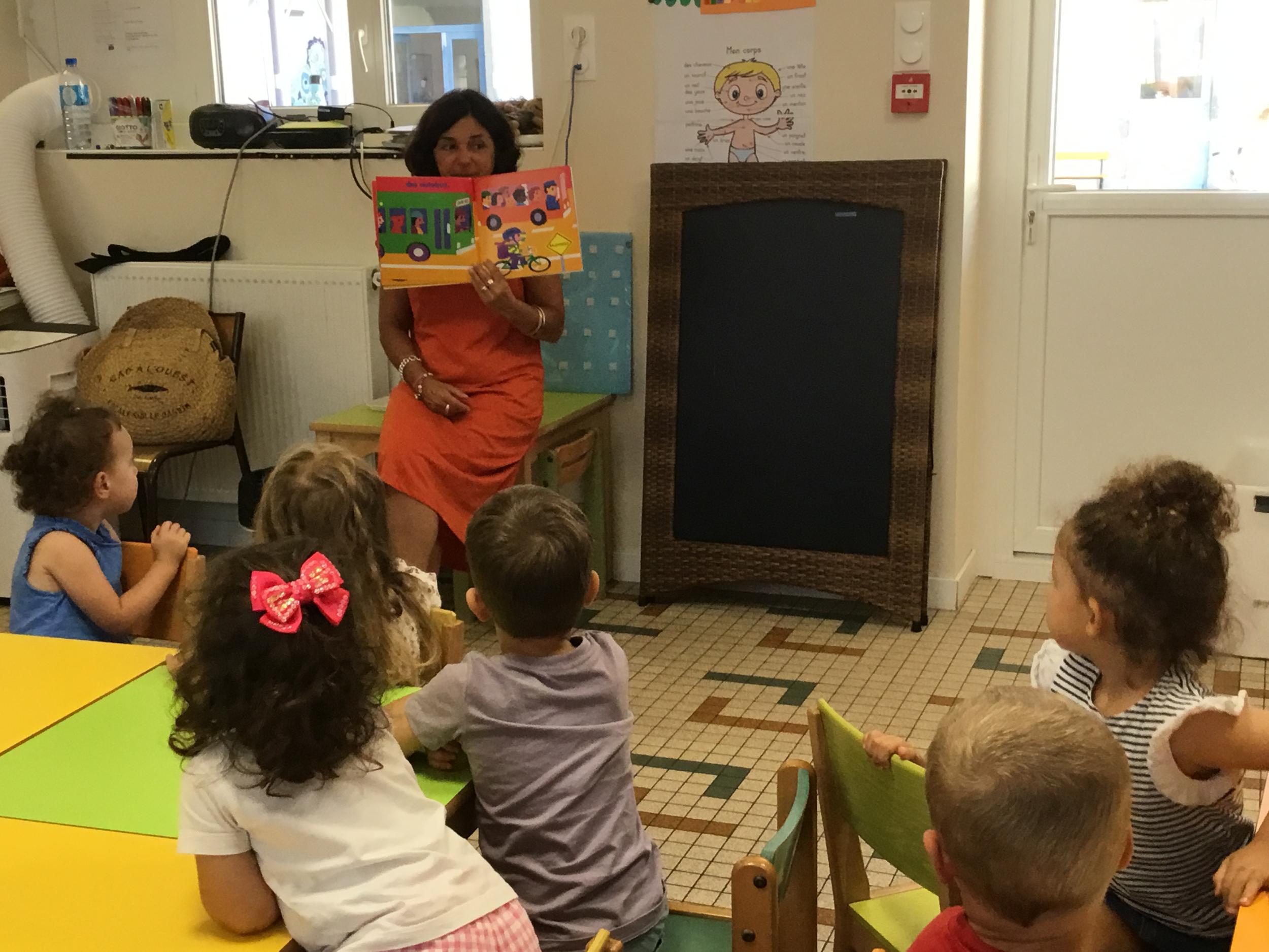 Les enfants ont écouté l’histoire de Tom … Ils ont tous été très attentifs. Les illustrations de l’album nous ont permis de repérer certaines formes mais surtout de faire des hypothèses… car Tom va travailler en vélo dans un lieu où il y a des singes, des acrobates, des éléphants….