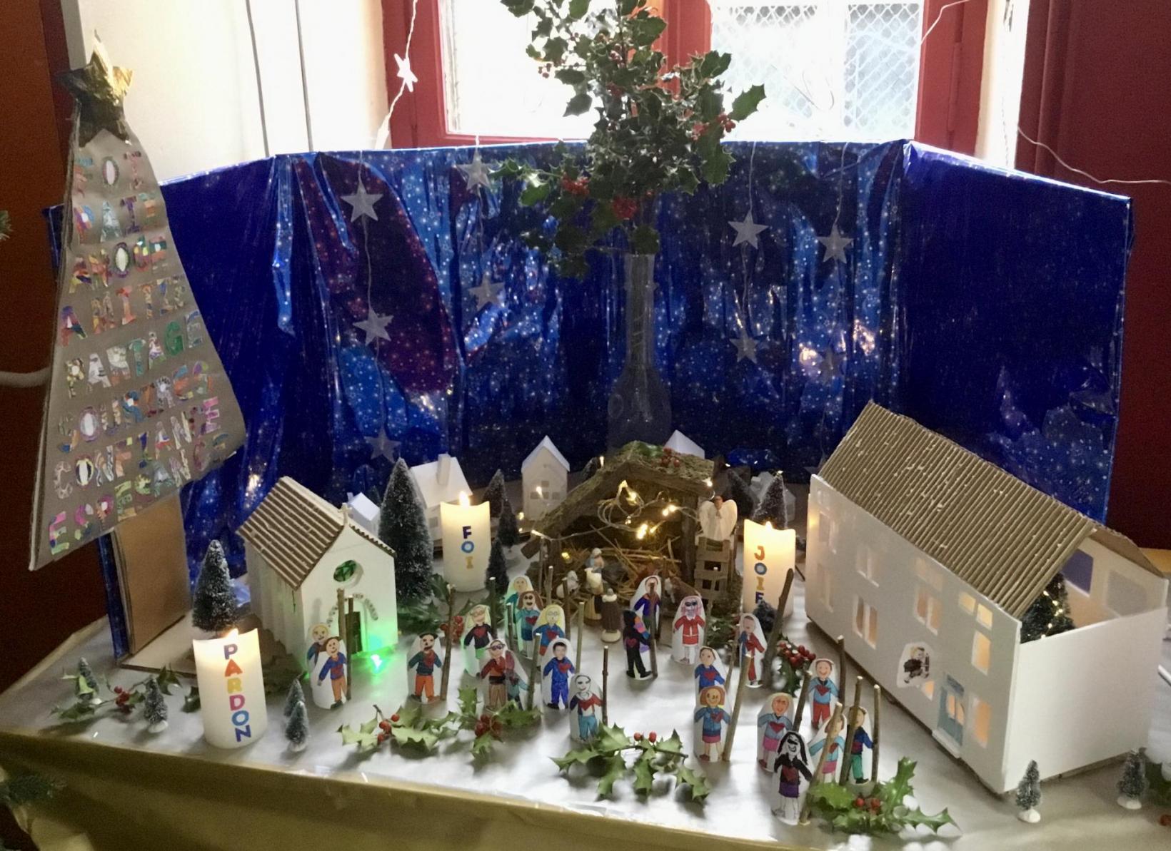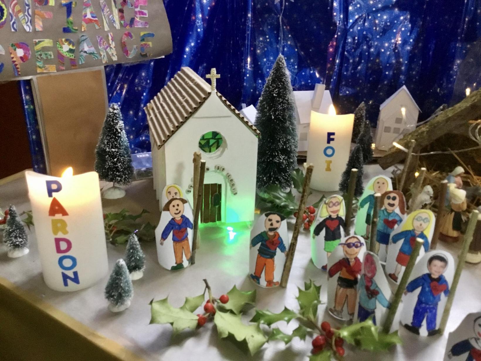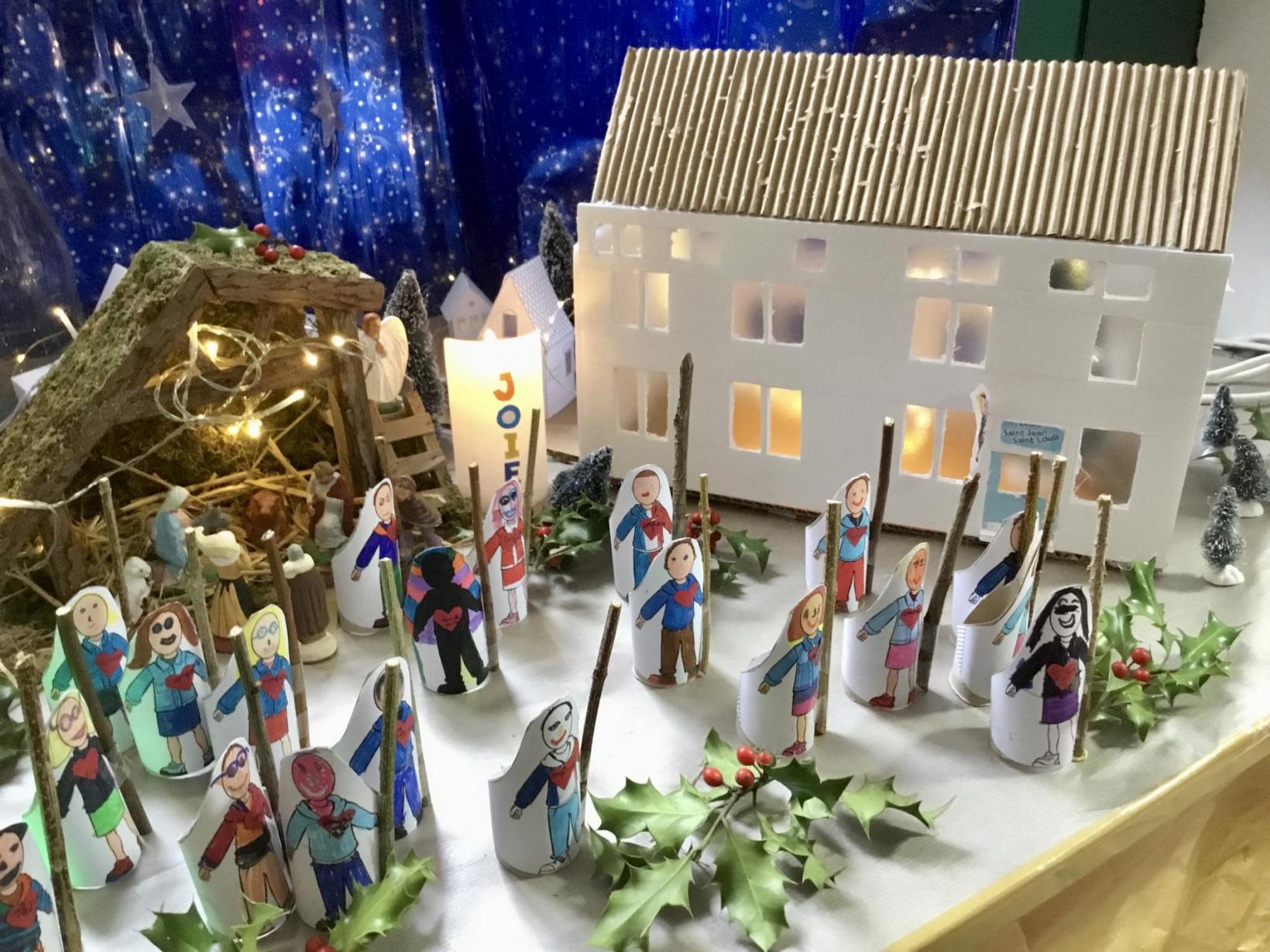 Bravo aux élèves de primaire et à Anne pour cette magnifique crèche où notre école est représentée ;)