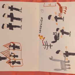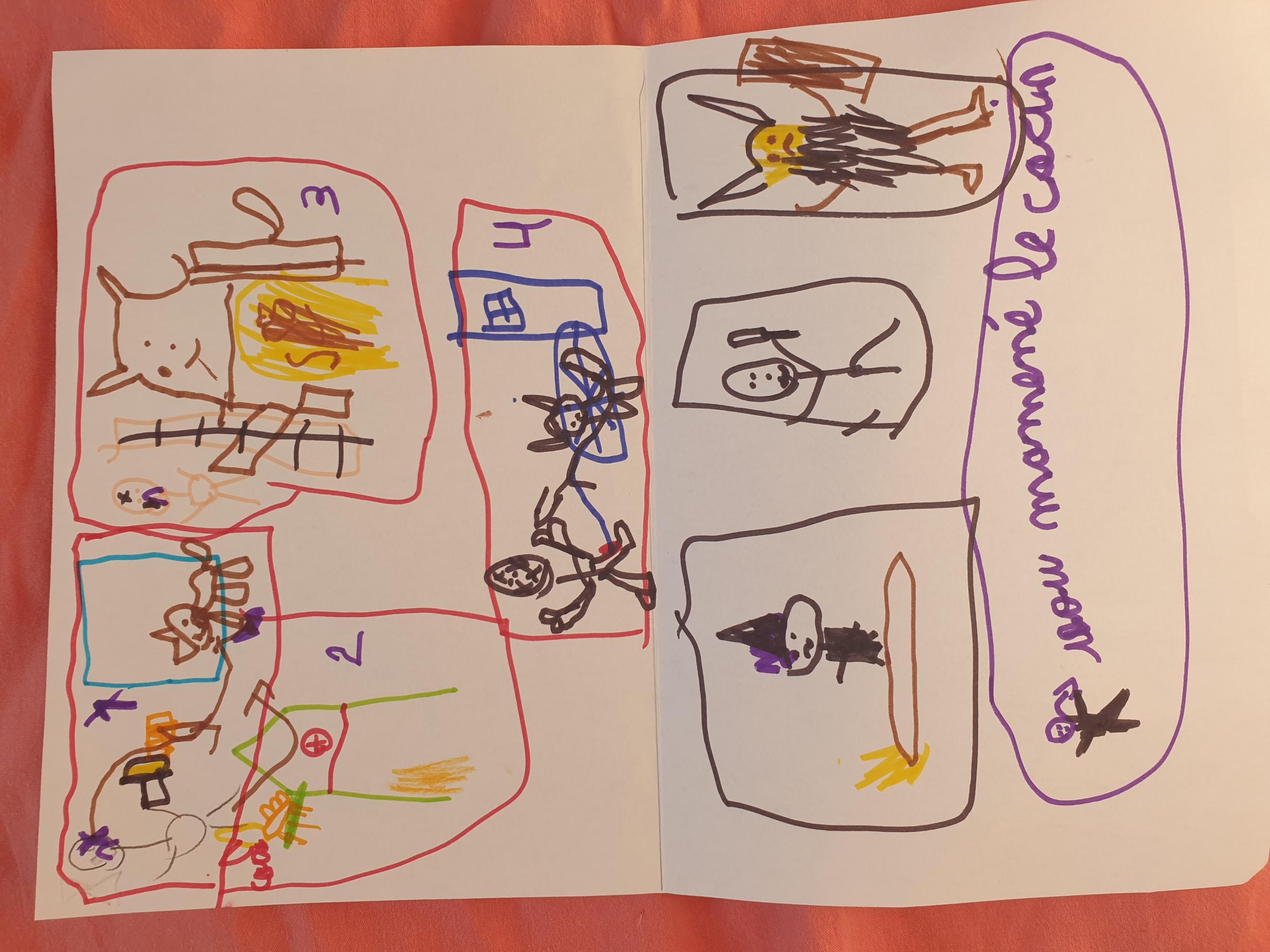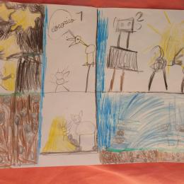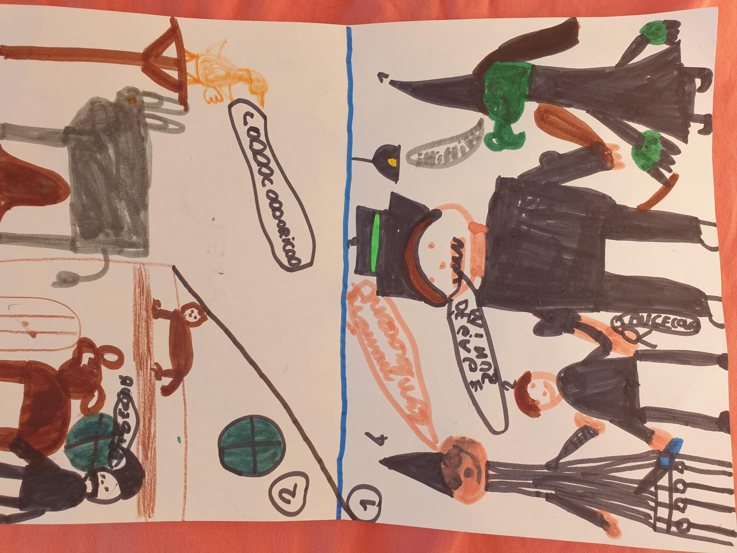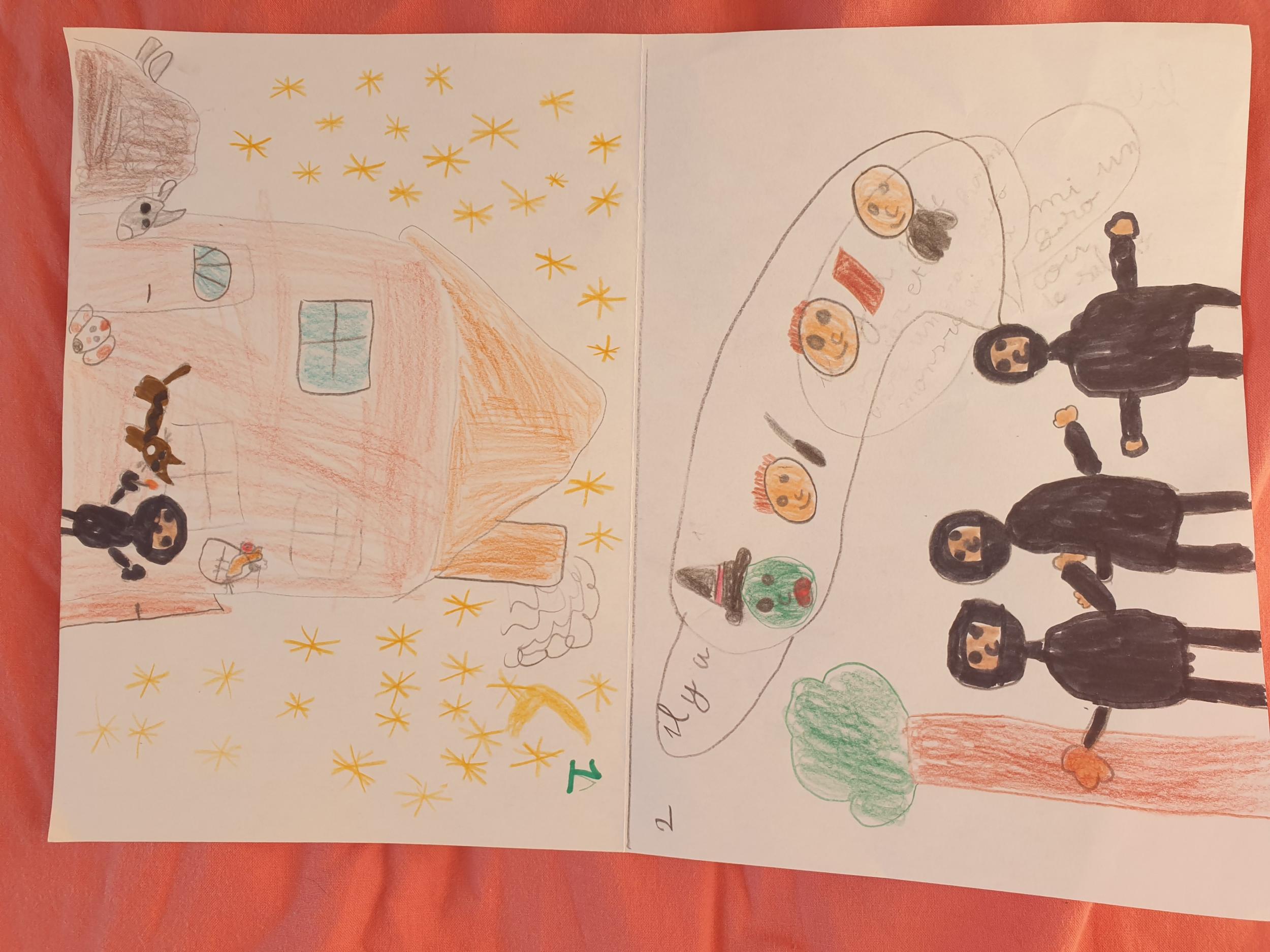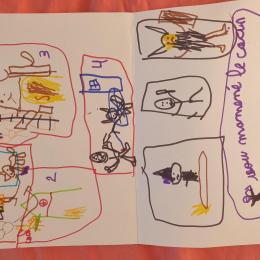 Là encore, les élèves ont dessiné ce passage sur la seconde moitié de la feuille blanche.