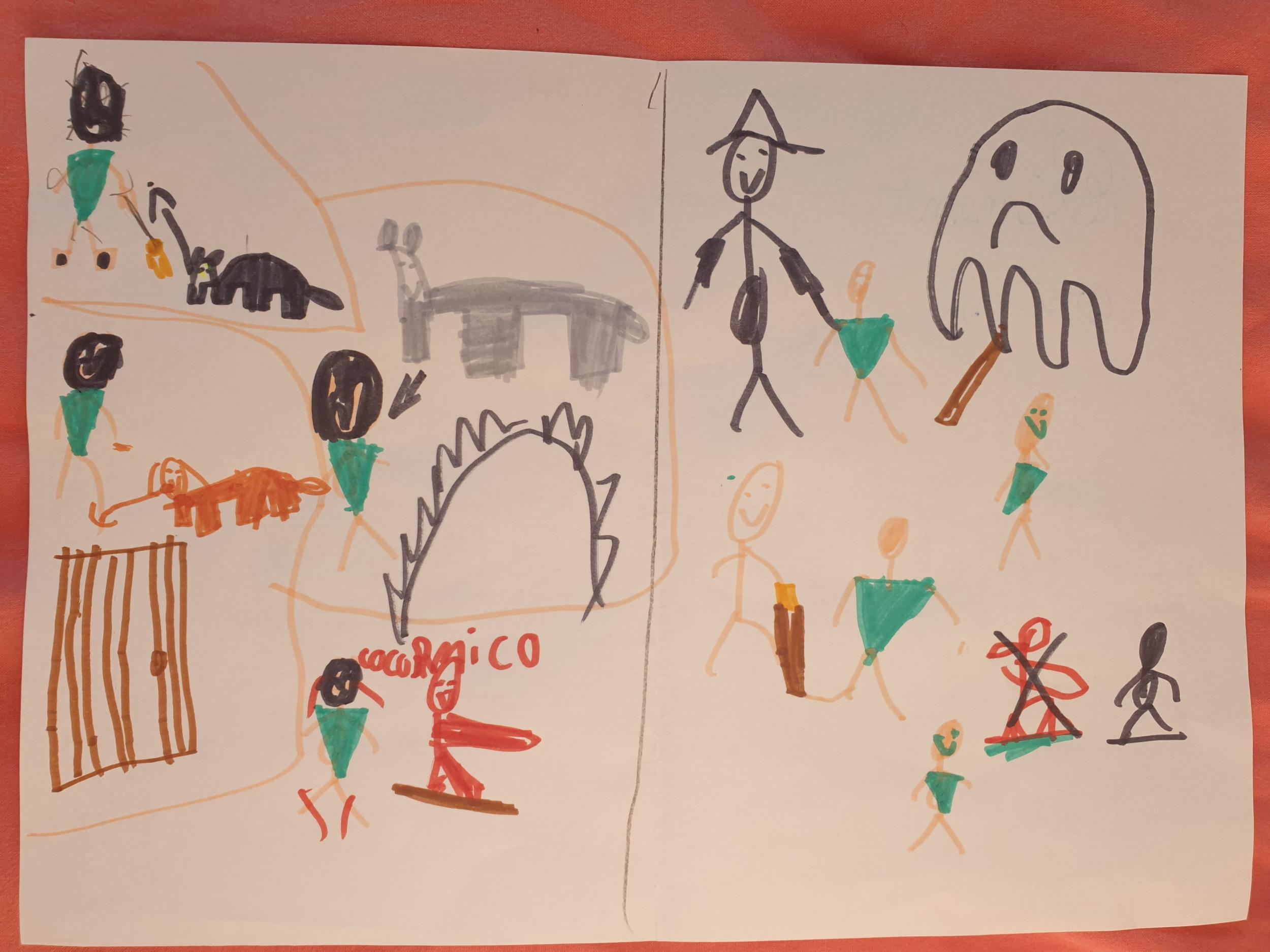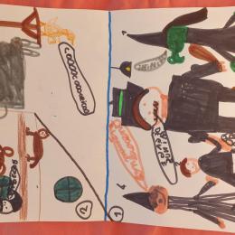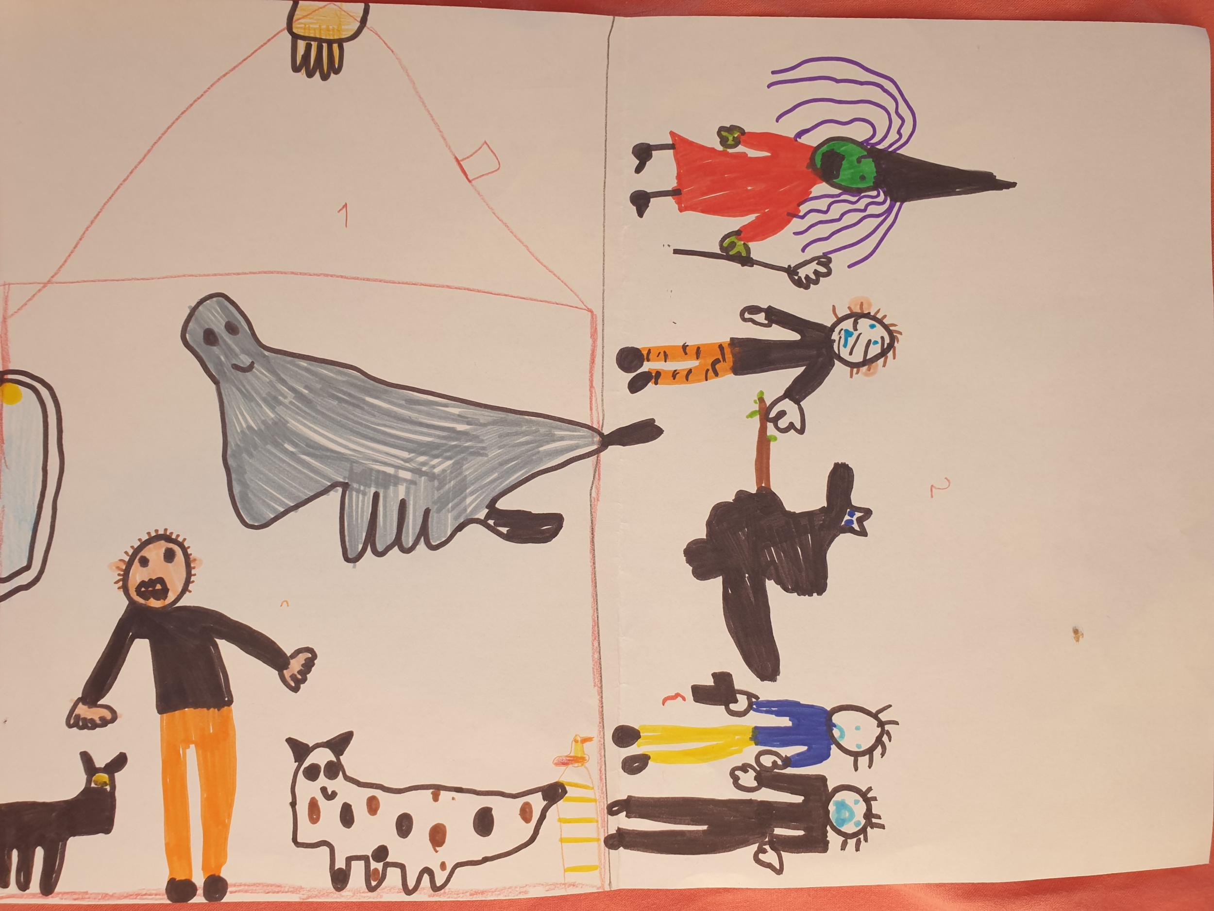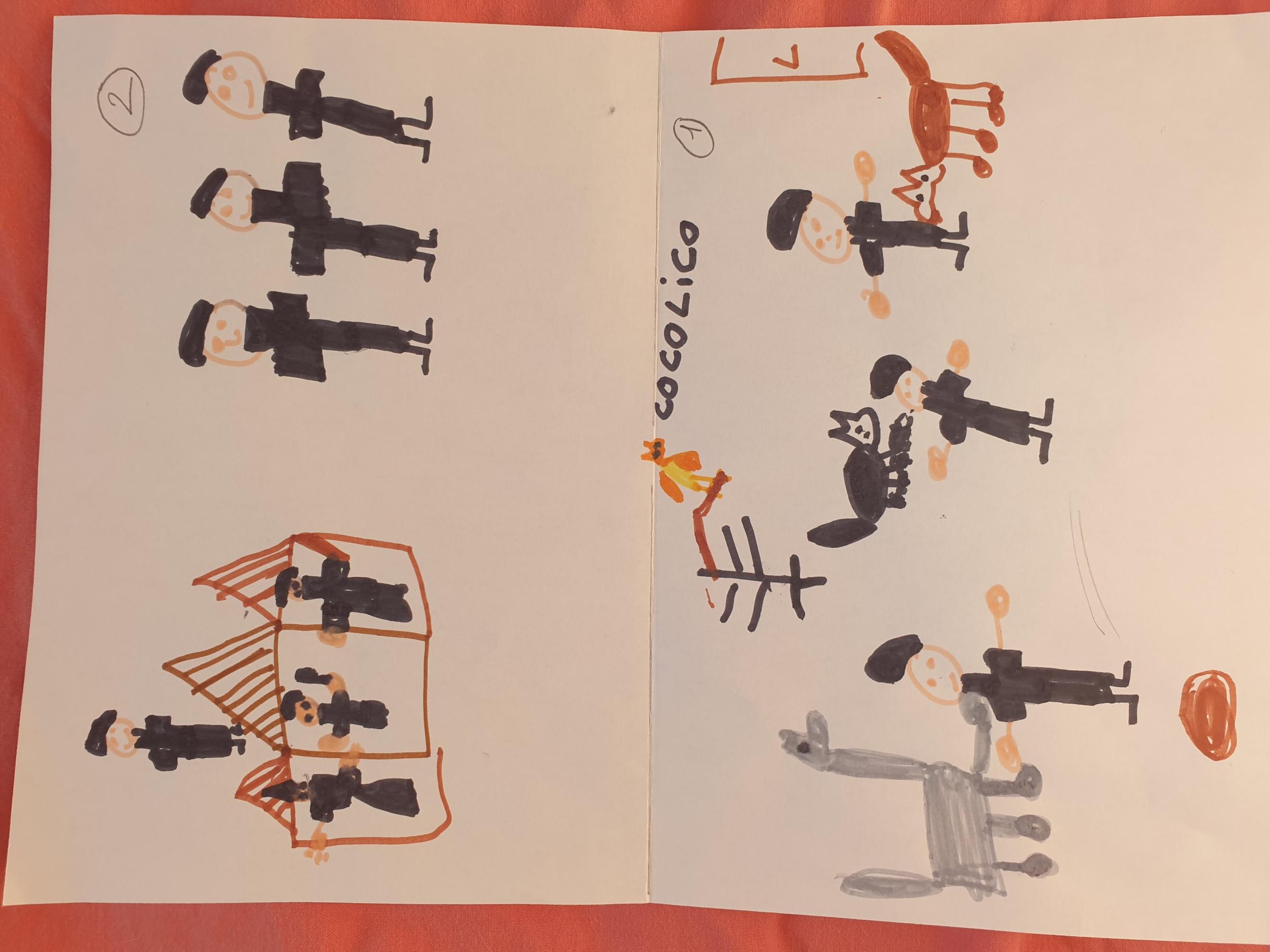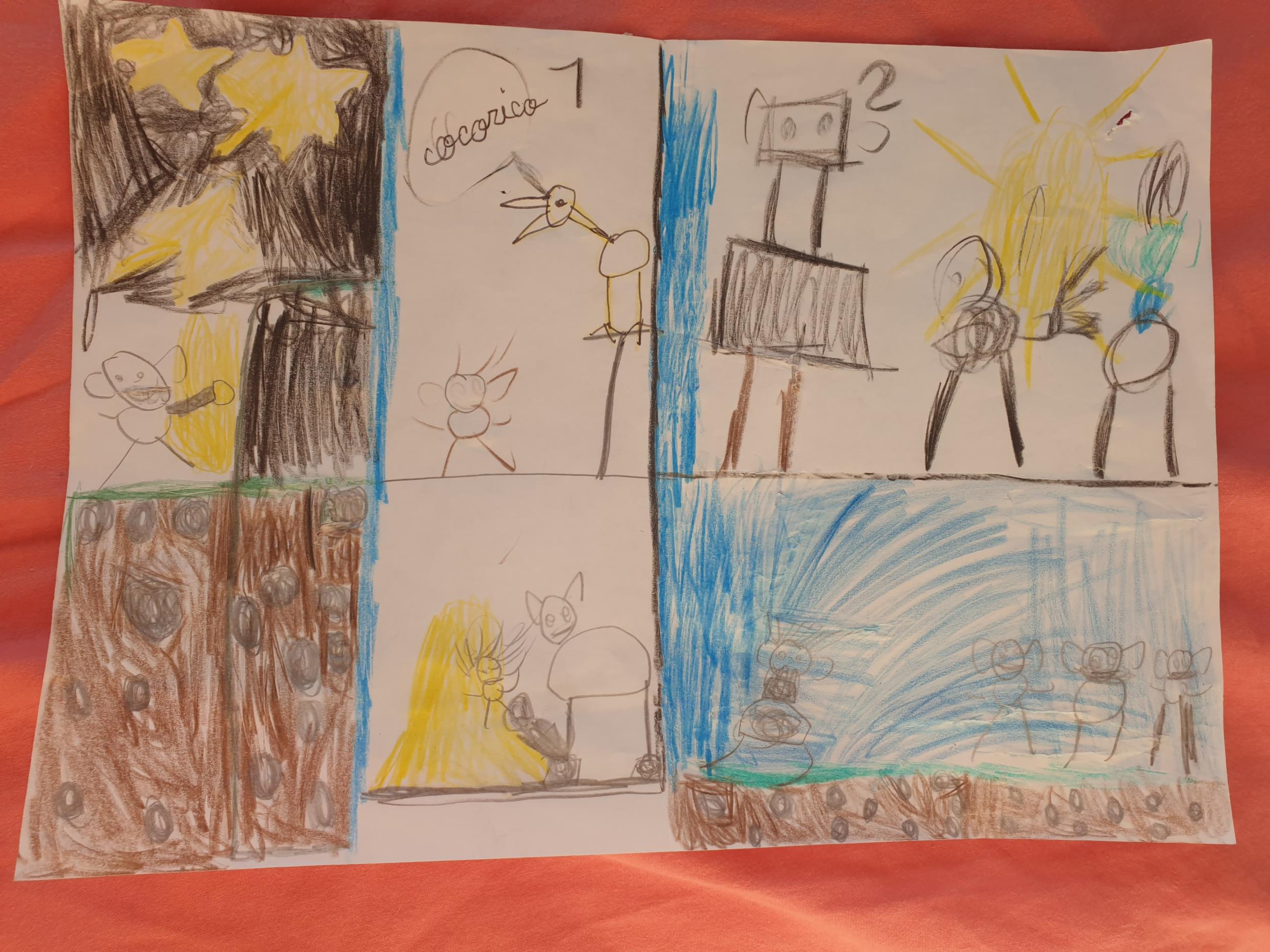 Là encore, les élèves ont dessiné ce passage sur la seconde moitié de la feuille blanche.