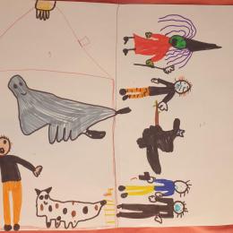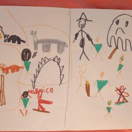 Ensuite, chacun a pu voir le dessin des autres et s'en est suivi un échange, nous avons pu discuter des deux points de vue et surtout se mettre à la place de l'homme qui a eu très peur. C'est encore très difficile à cet âge là de pouvoir se décentrer, et se mettre à la place de l'autre.
