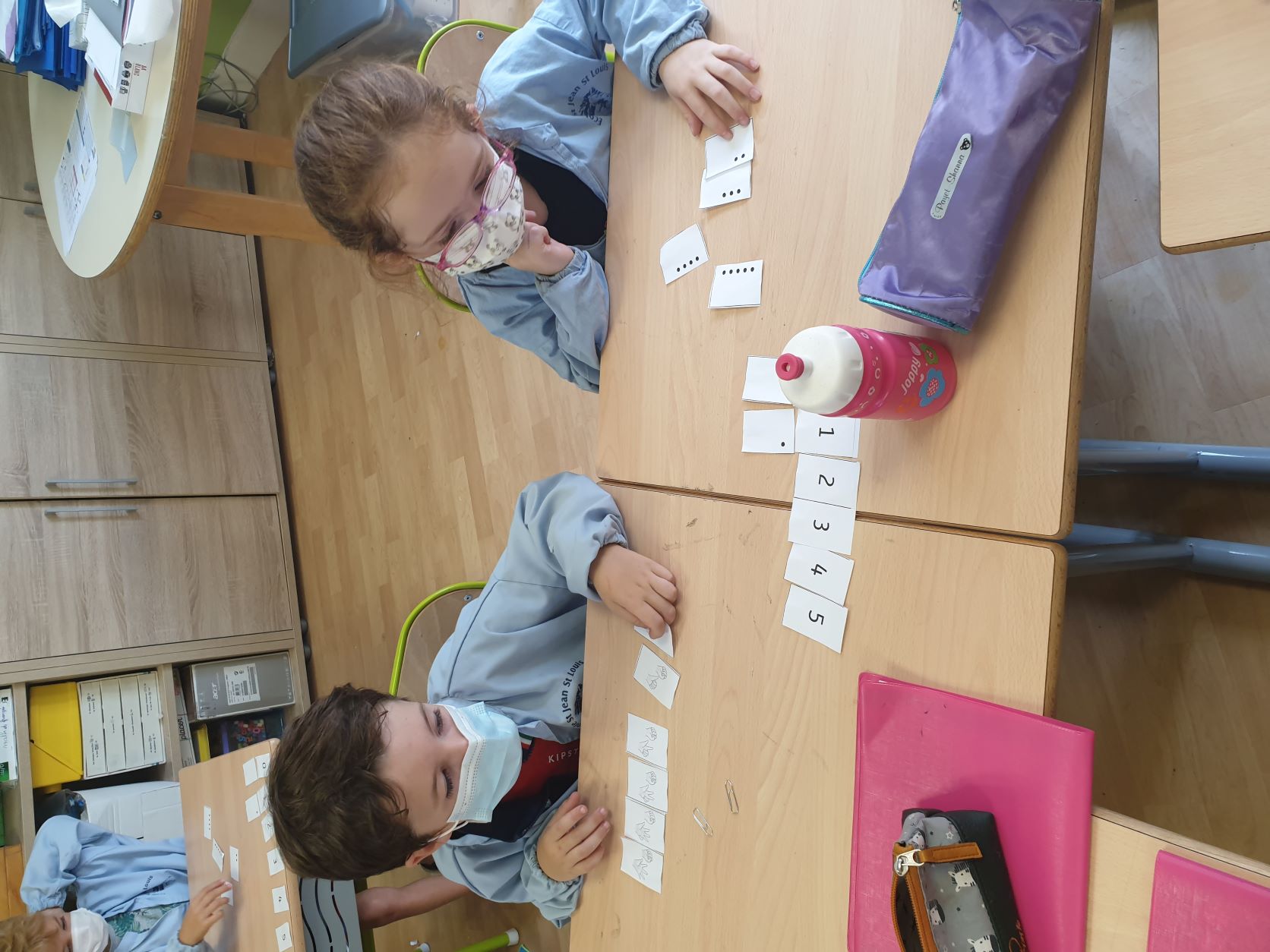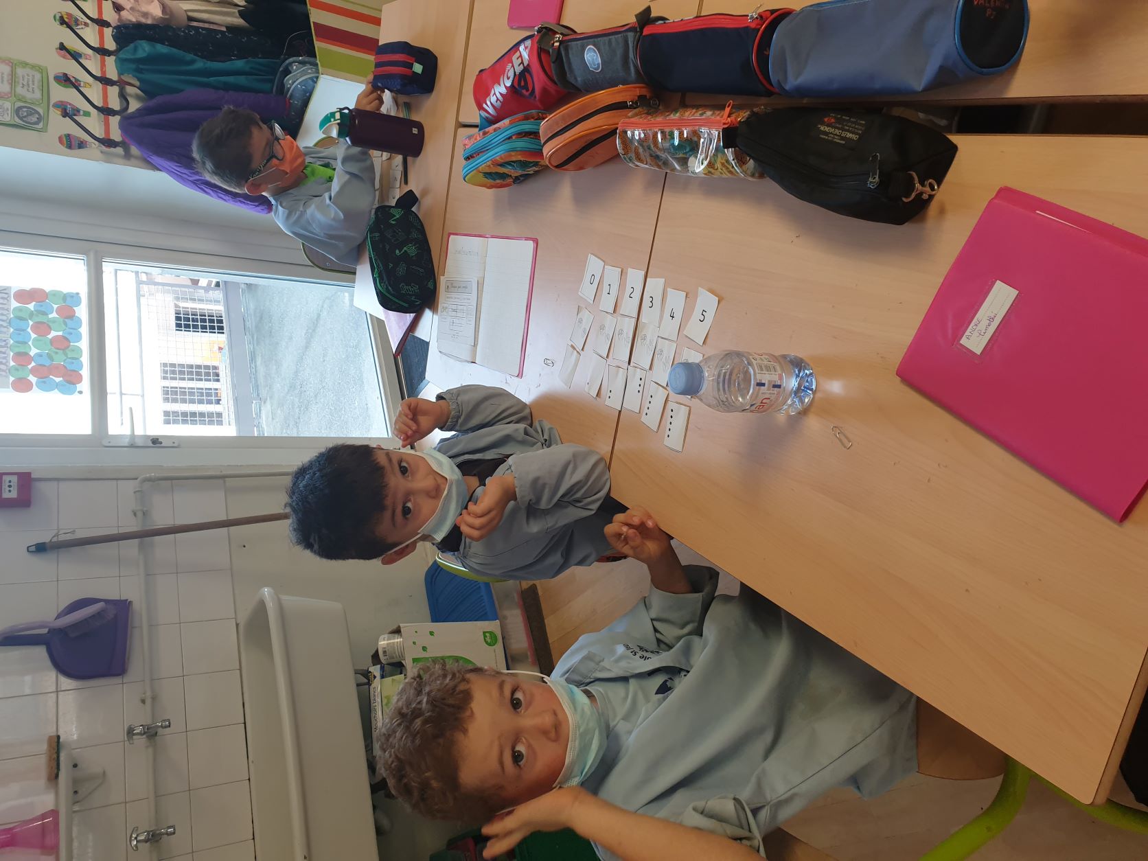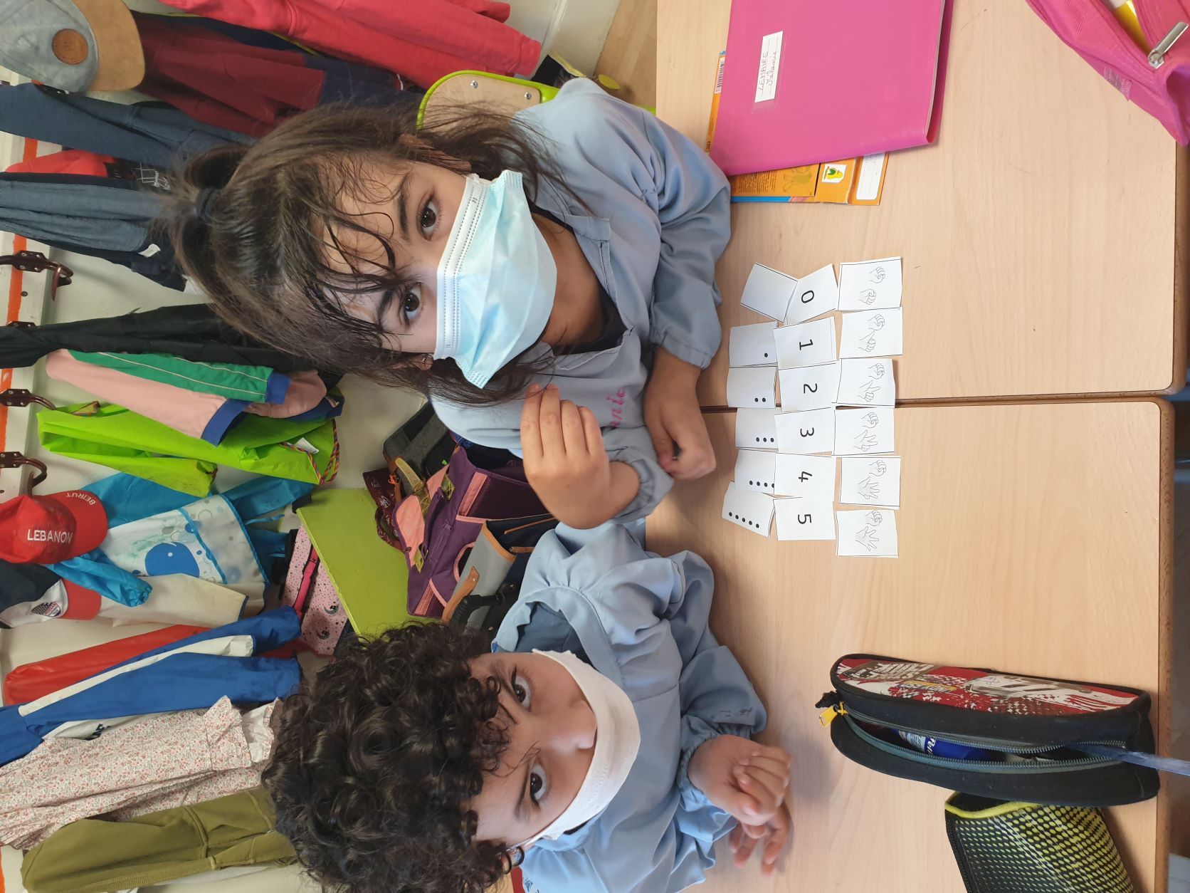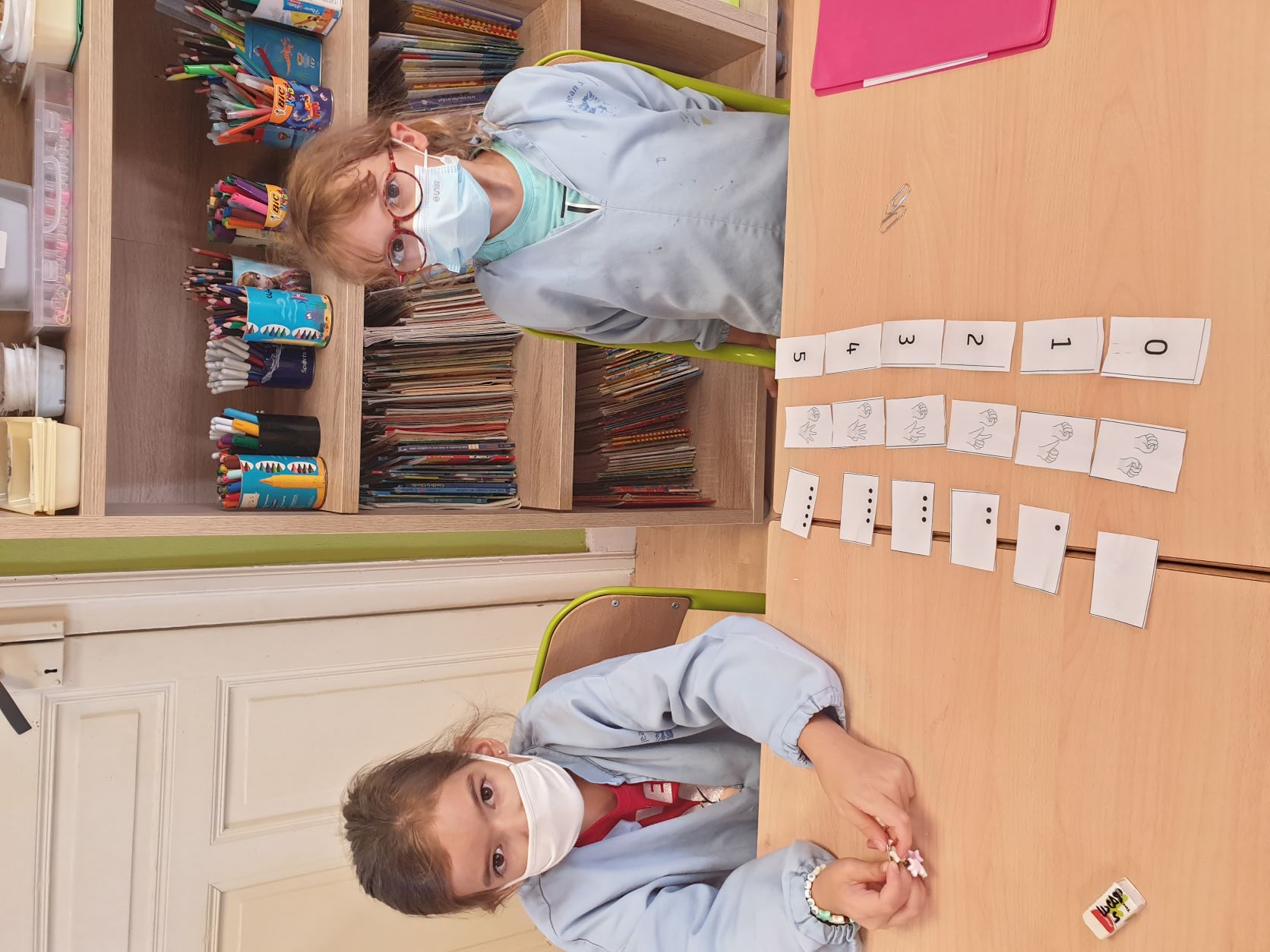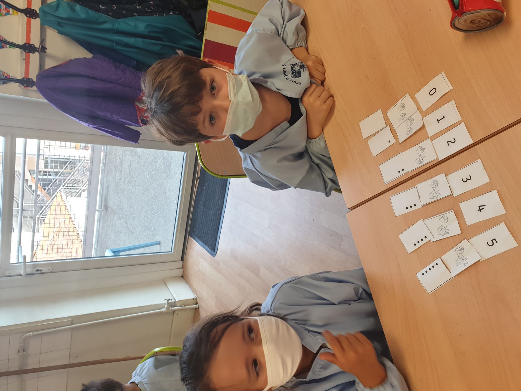 A la fin de la séance la maîtresse a levé ses doigts et nous on devait lever l'étiquette correspondante au nombre.