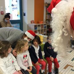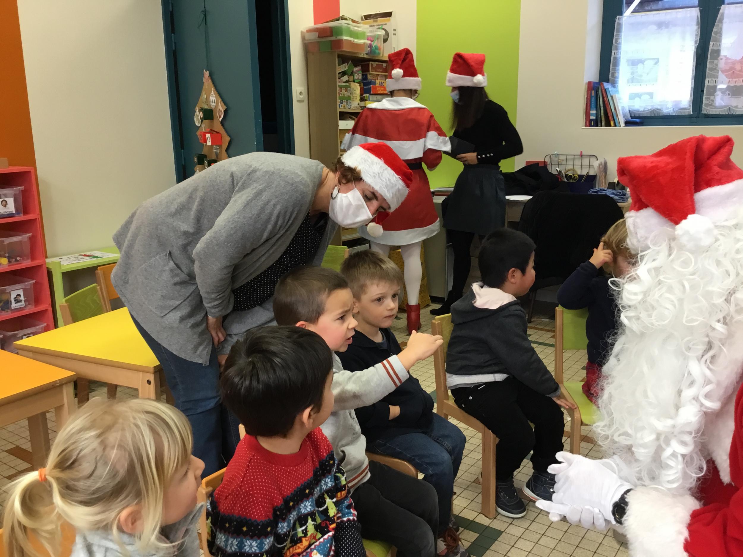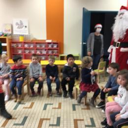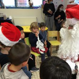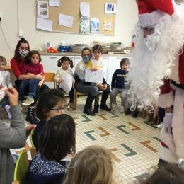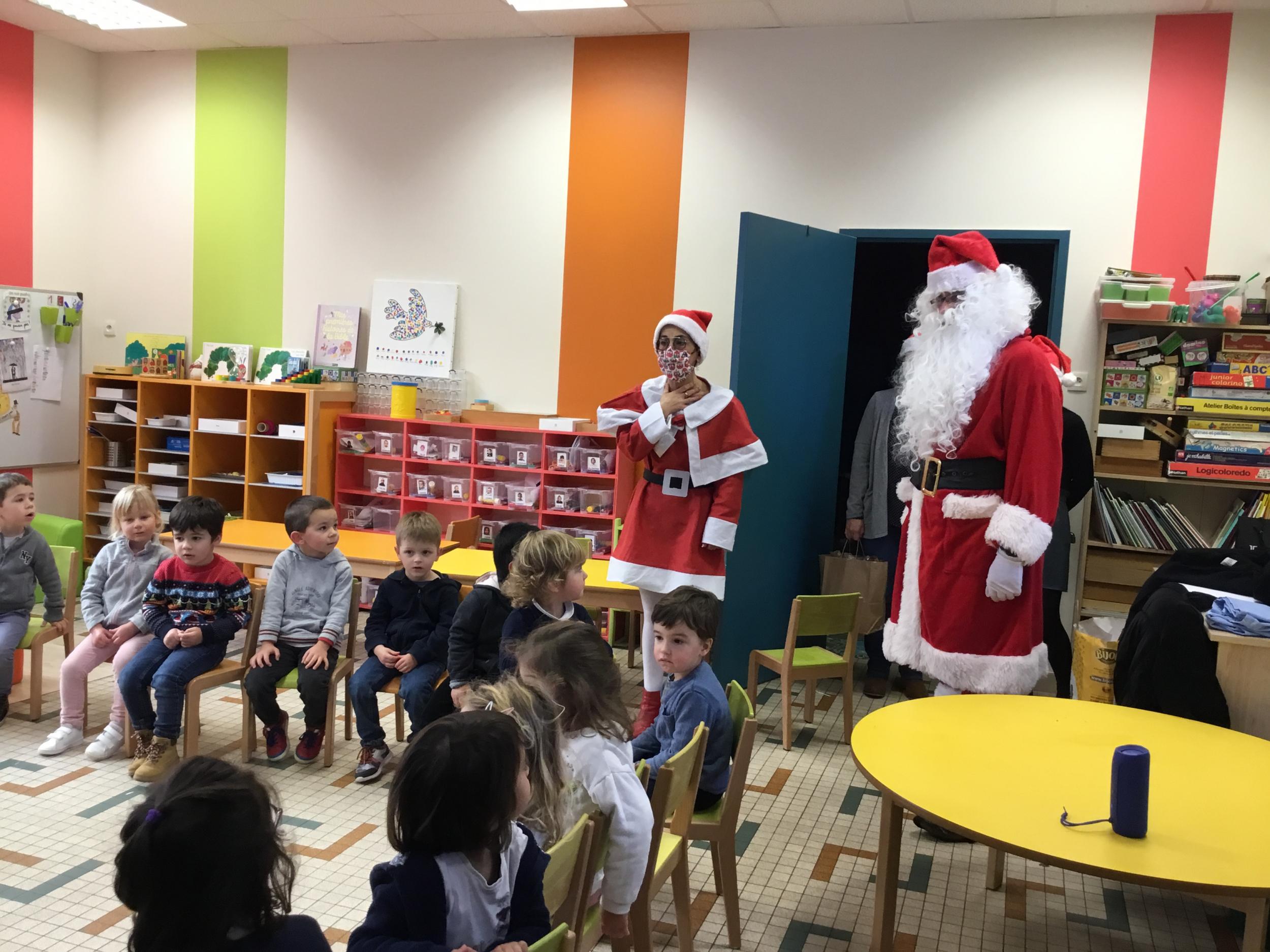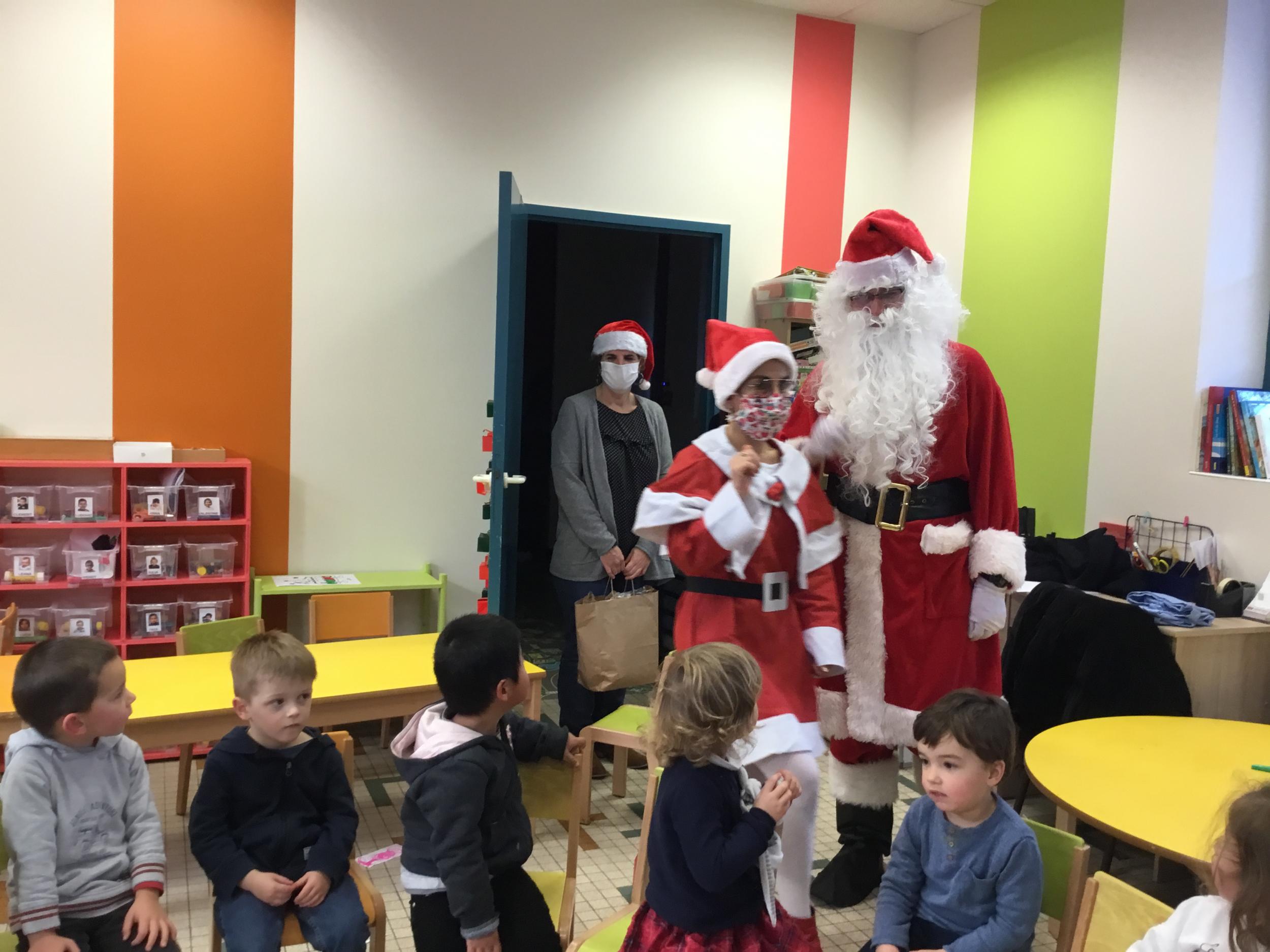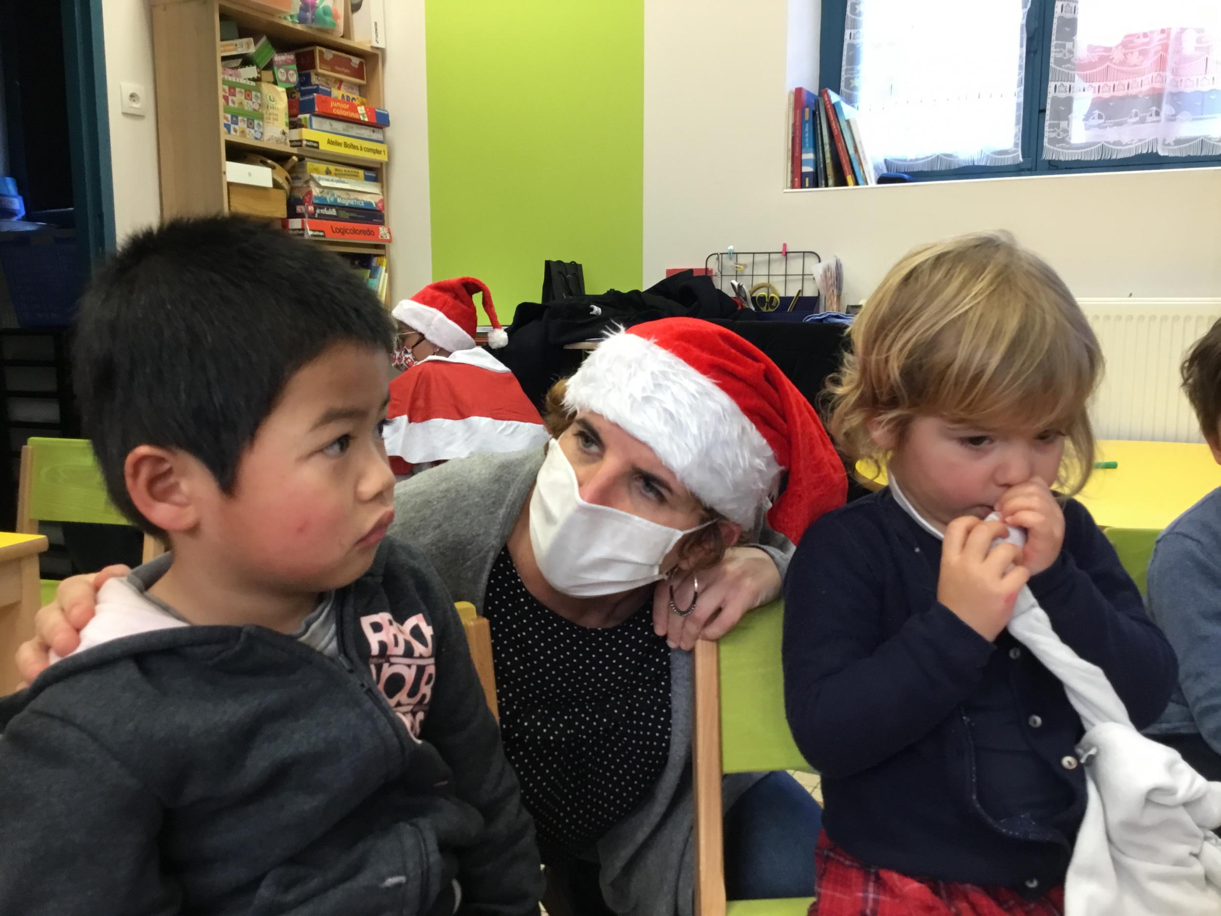 Le père Noël nous a apporté un bon goûter . Le traditionnel petit pain au lait, une sucette en chocolat et une mandarine . Il a donné à chaque enfant un petit pot de miel et une petite serviette réutilisable ... une bonne idée pour sensibiliser les plus grands à la protection de la planète et pour se régaler... L.APEL de l’ECOLE parraine une ruche et une ruchette chez un apiculteur de Vielmur sur Àgout