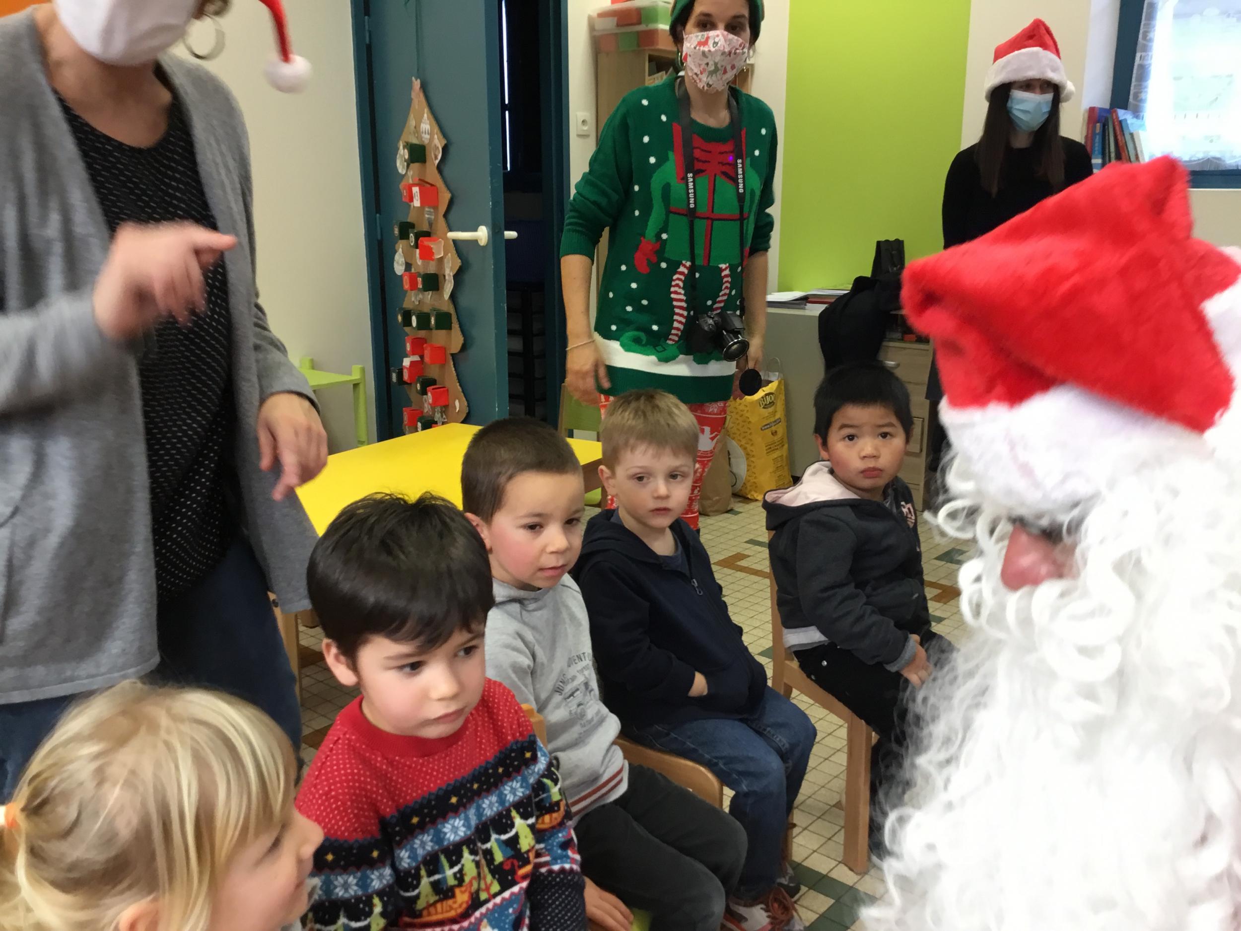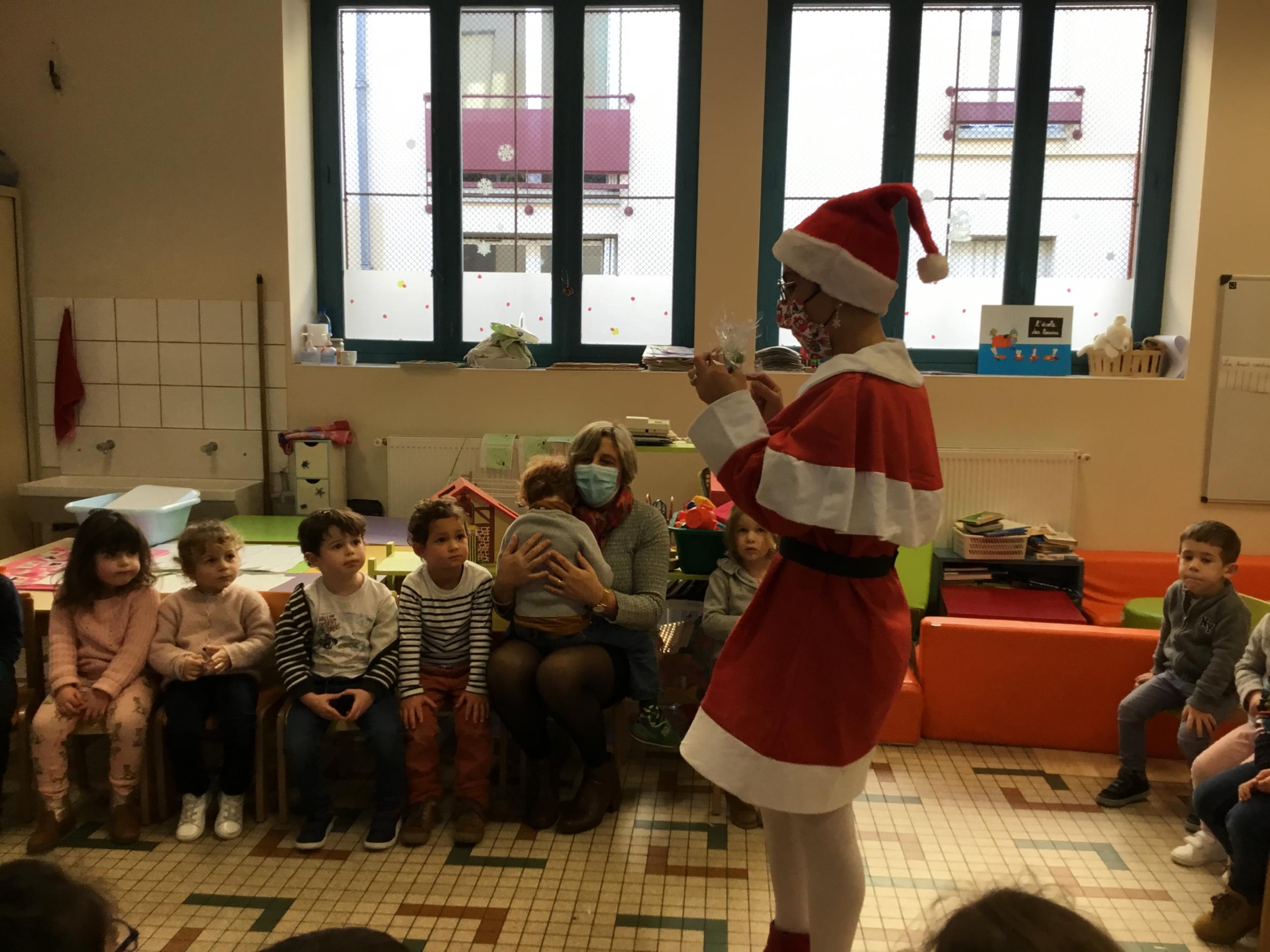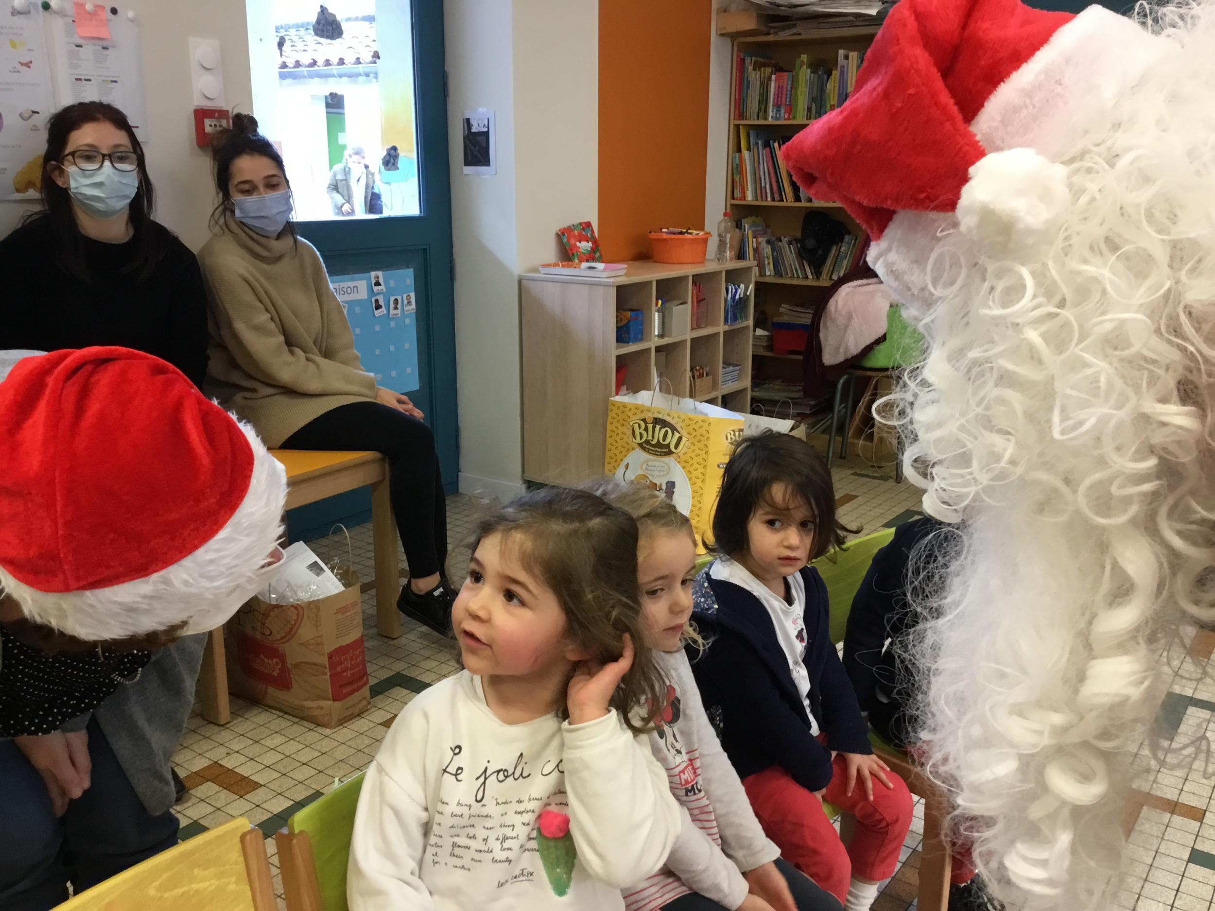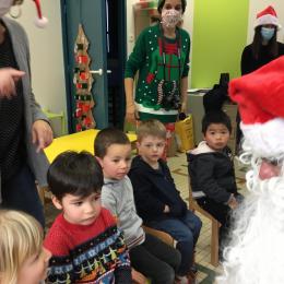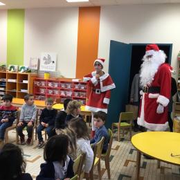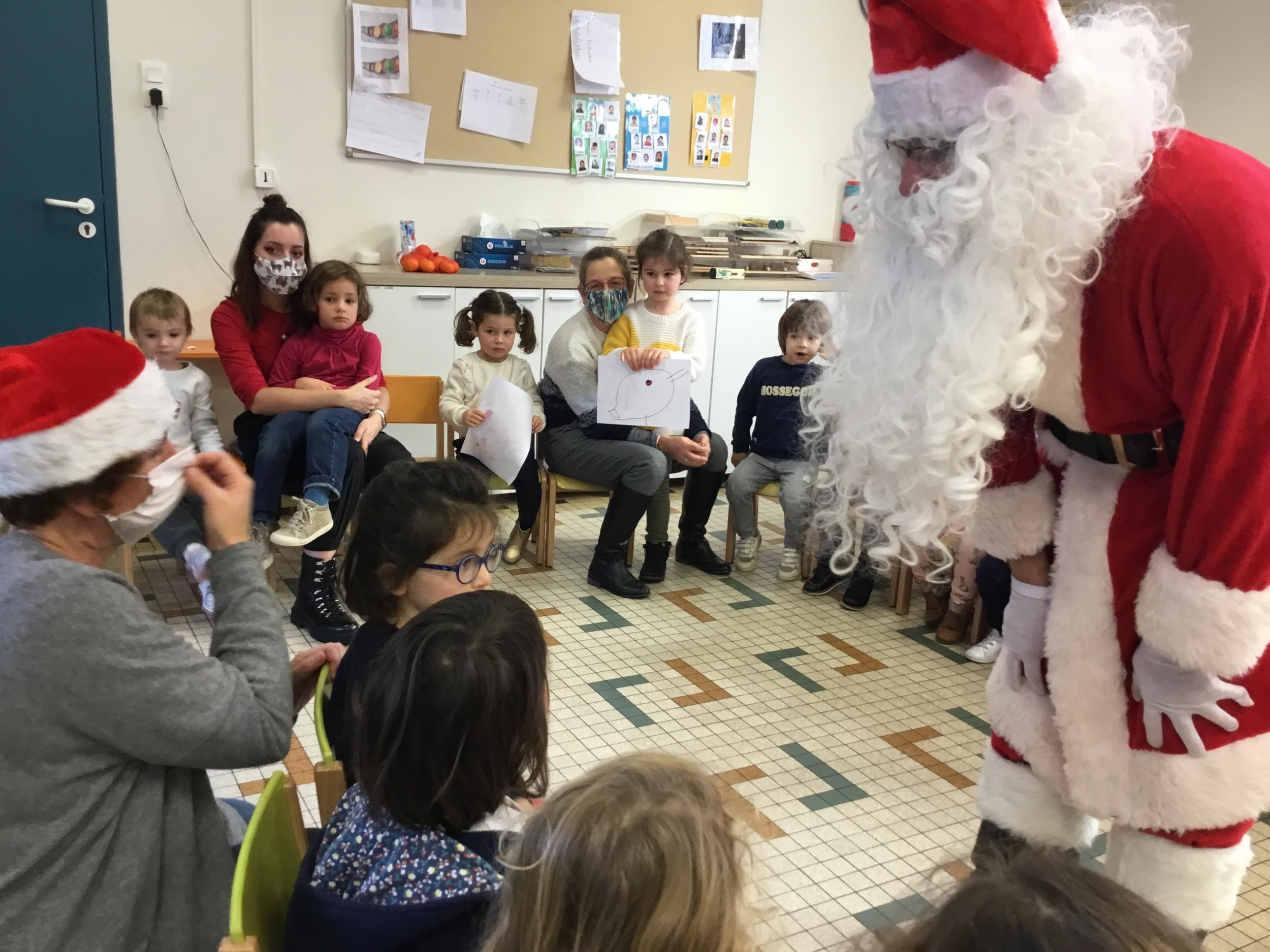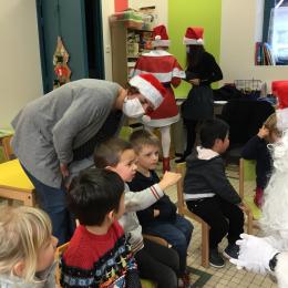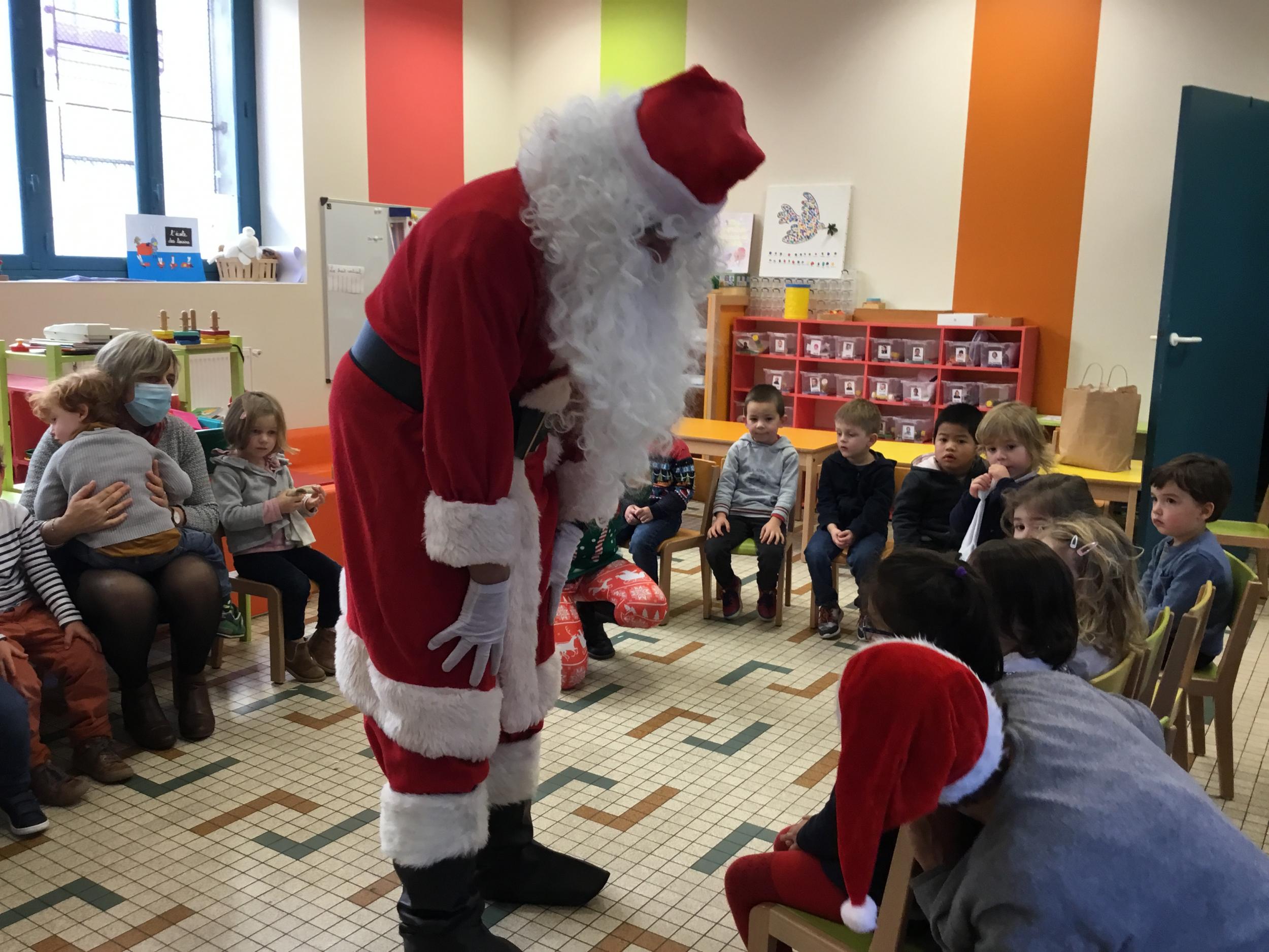 Le père Noël nous a apporté un bon goûter . Le traditionnel petit pain au lait, une sucette en chocolat et une mandarine . Il a donné à chaque enfant un petit pot de miel et une petite serviette réutilisable ... une bonne idée pour sensibiliser les plus grands à la protection de la planète et pour se régaler... L.APEL de l’ECOLE parraine une ruche et une ruchette chez un apiculteur de Vielmur sur Àgout