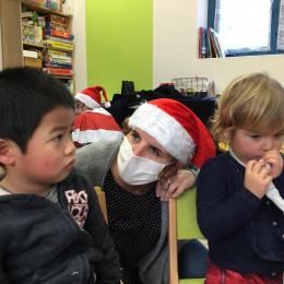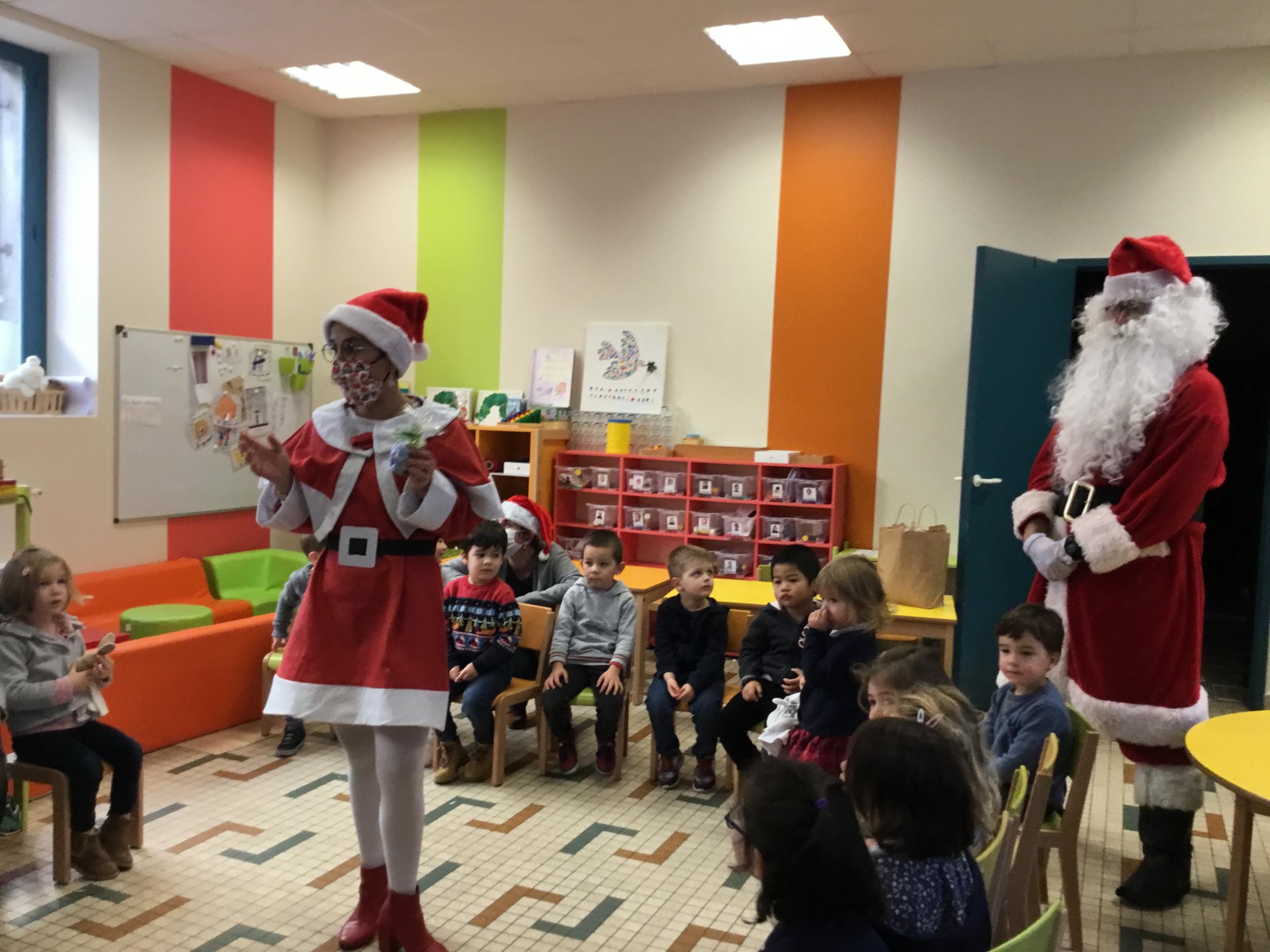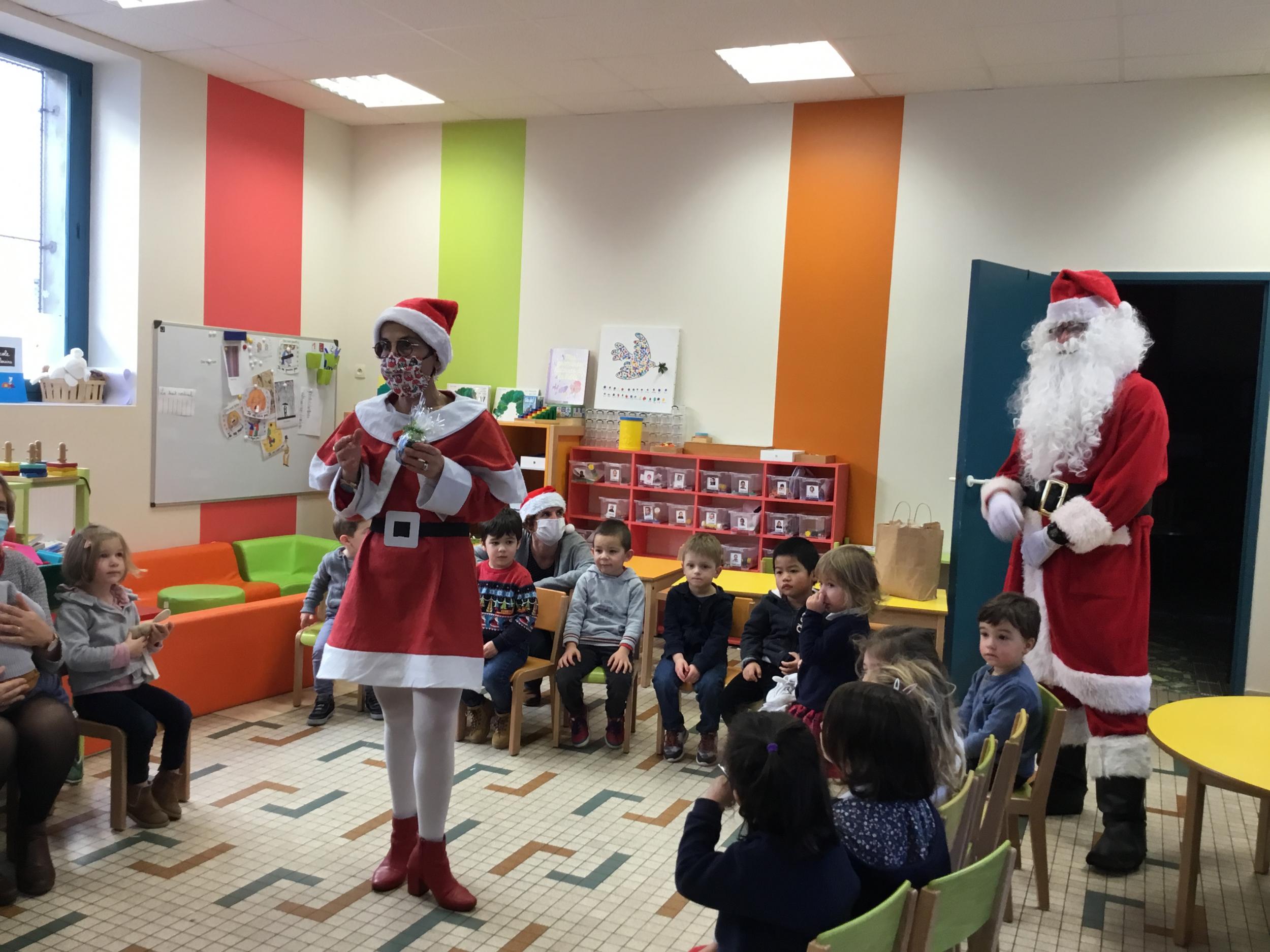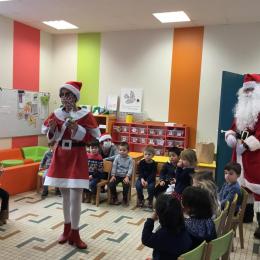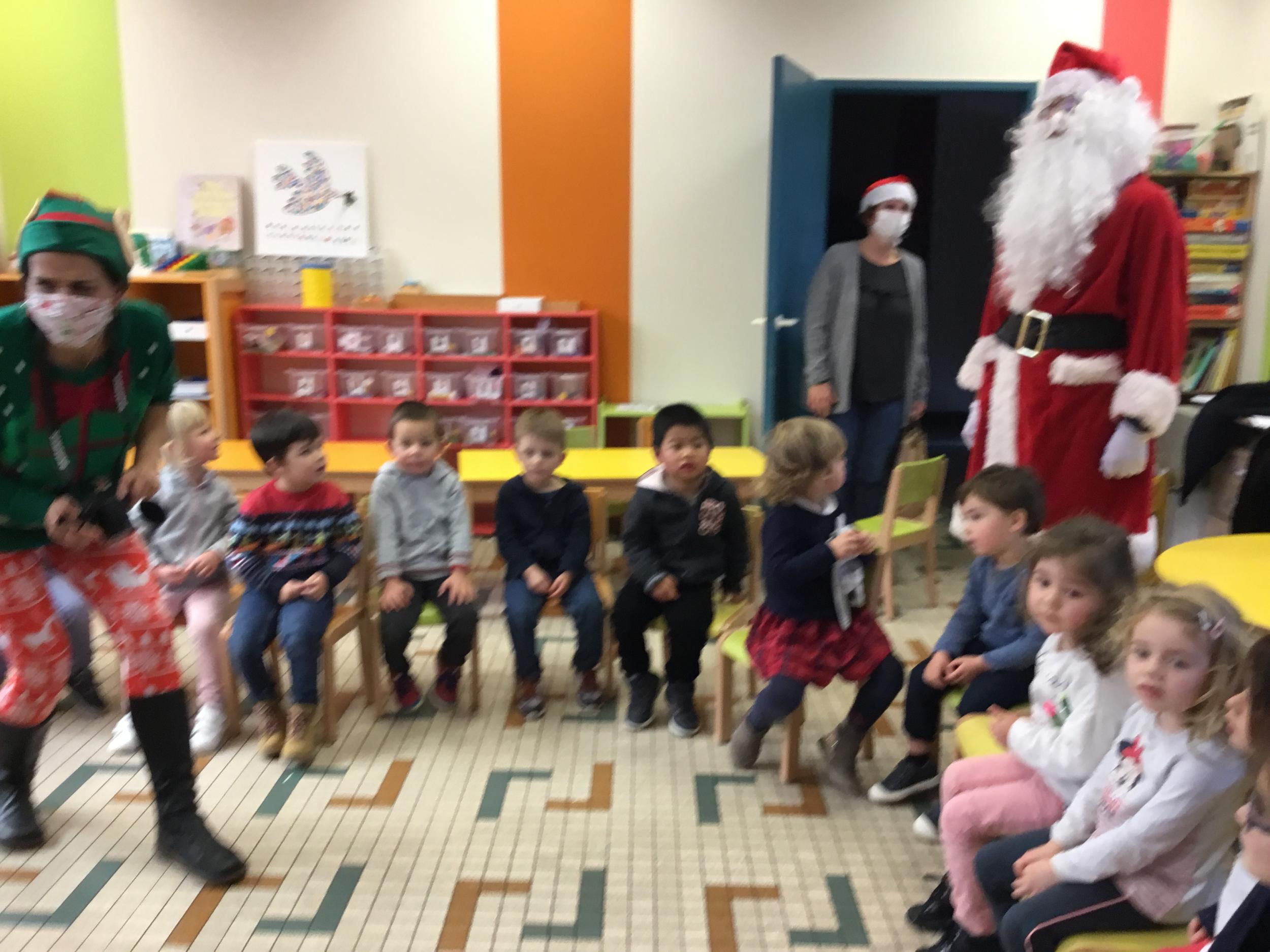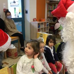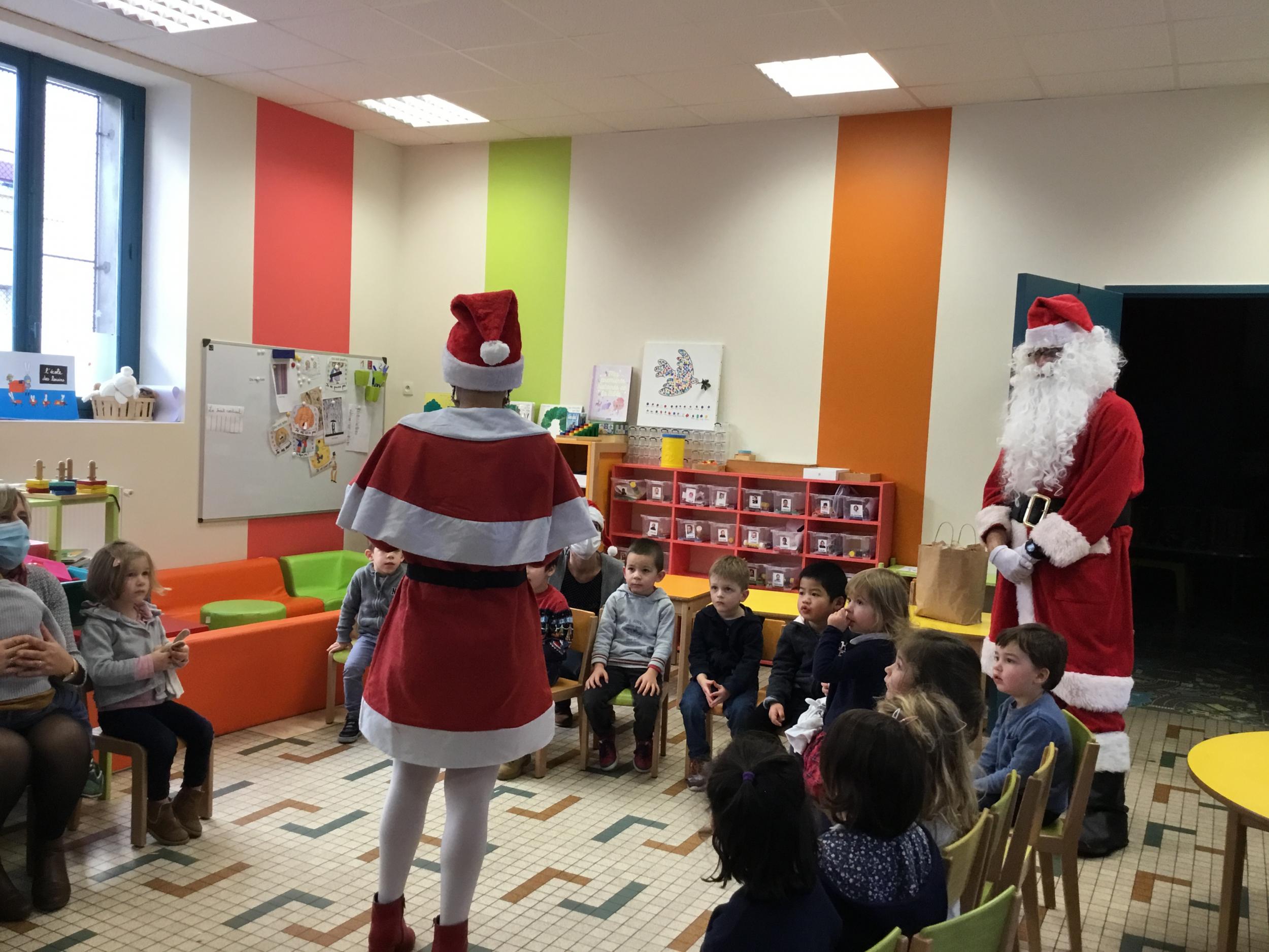 Le père Noël nous a apporté un bon goûter . Le traditionnel petit pain au lait, une sucette en chocolat et une mandarine . Il a donné à chaque enfant un petit pot de miel et une petite serviette réutilisable ... une bonne idée pour sensibiliser les plus grands à la protection de la planète et pour se régaler... L.APEL de l’ECOLE parraine une ruche et une ruchette chez un apiculteur de Vielmur sur Àgout