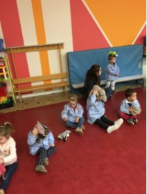 Il s’agit pour chaque élève de se familiariser avec des sonorités, des mots, des expressions, puis d’oser répéter et naturellement, prendre la parole dans une autre langue (sans stress, sans angoisse particulière, sans avoir peur d’être ridicule… )