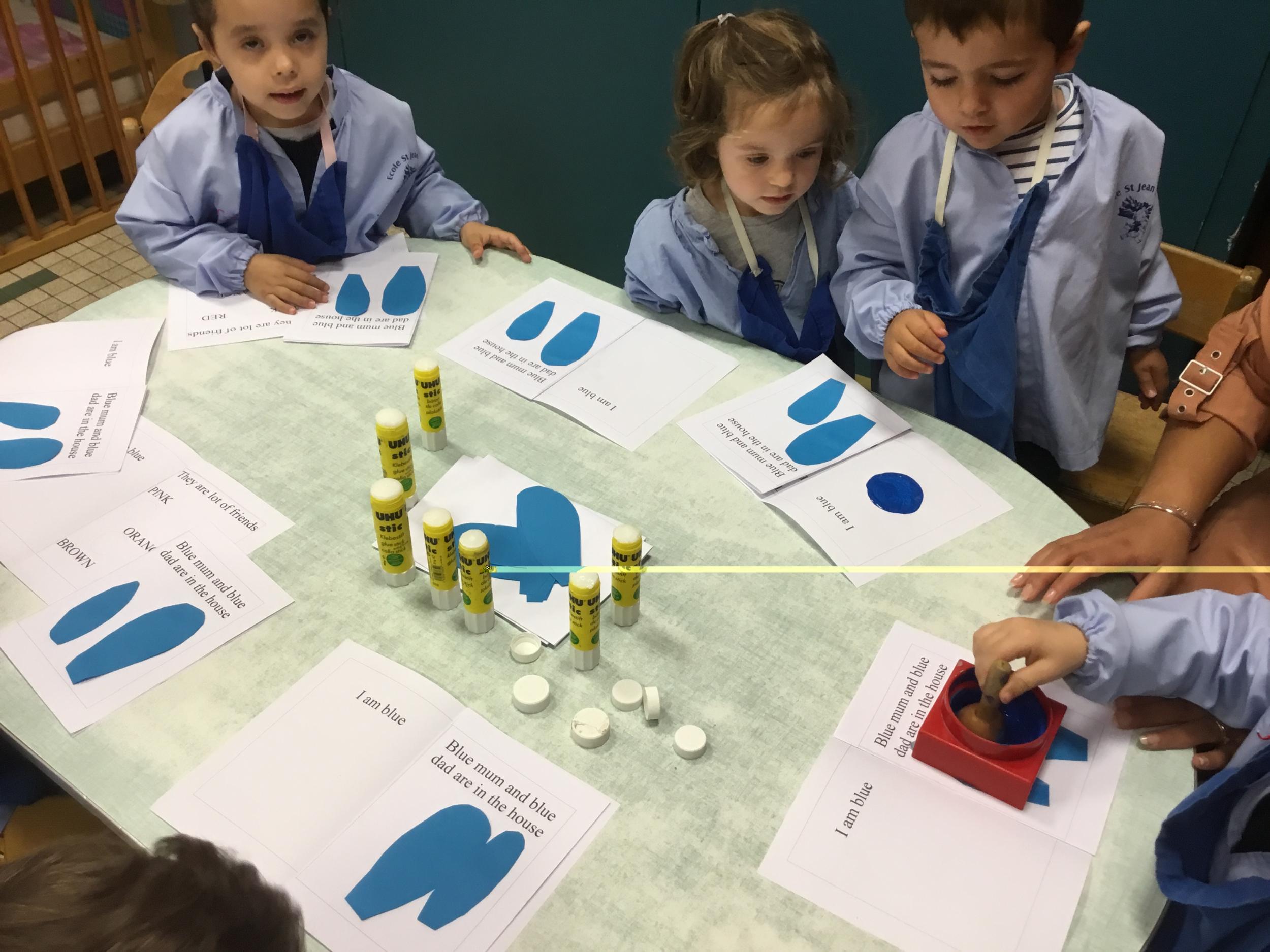 A plusieurs reprises dans la journée, le maître ou la maîtresse prend la parole en anglais : consignes, chansons, comptines, marionnettes, rituels… des occasions d’entendre des sonorités nouvelles et de les apprivoiser, d’oser répéter, de mémoriser et très rapidement de répondre à des questions ! Les anglais sont présents tous les matins et pour toutes les activités de la maternelle.