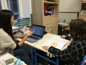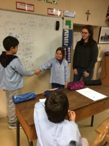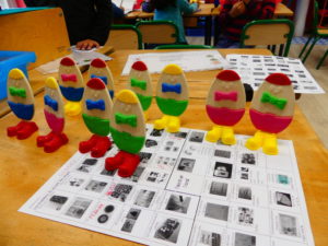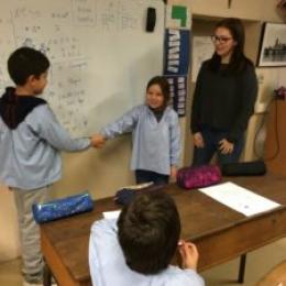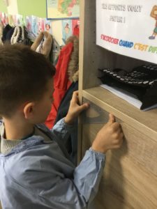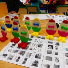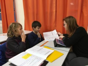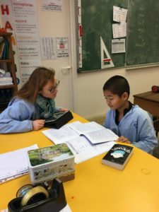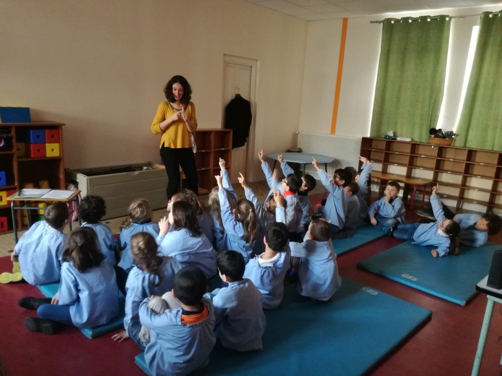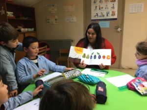 - L’ouverture aux autres par l’intermédiaire des langues : présence de jeunes anglophones qui travaillent avec les enseignants et prennent en charge de petits groupes d’élèves pour de l’oral, des histoires, des comptines, des chants, des jeux, et des activités (sport, dessin…) où les consignes sont données en anglais